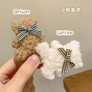 秋冬毛绒小熊发夹甜美可爱女孩刘海鸭嘴夹新款儿童卡通侧边夹发饰