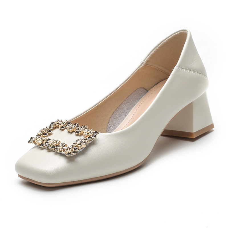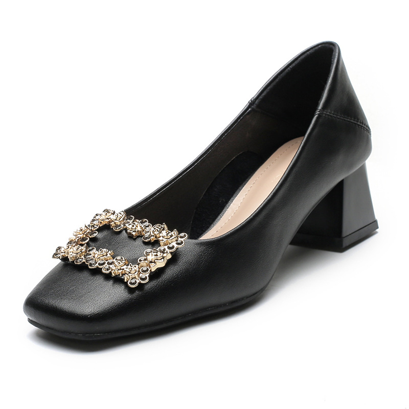 Jinfuli G500-7 여성용 스퀘어 토 싱글 슈즈 2024 신형 부드러운 가죽 신발 가죽 미드 힐 두꺼운 힐 가을 여성 신발스토어 가기