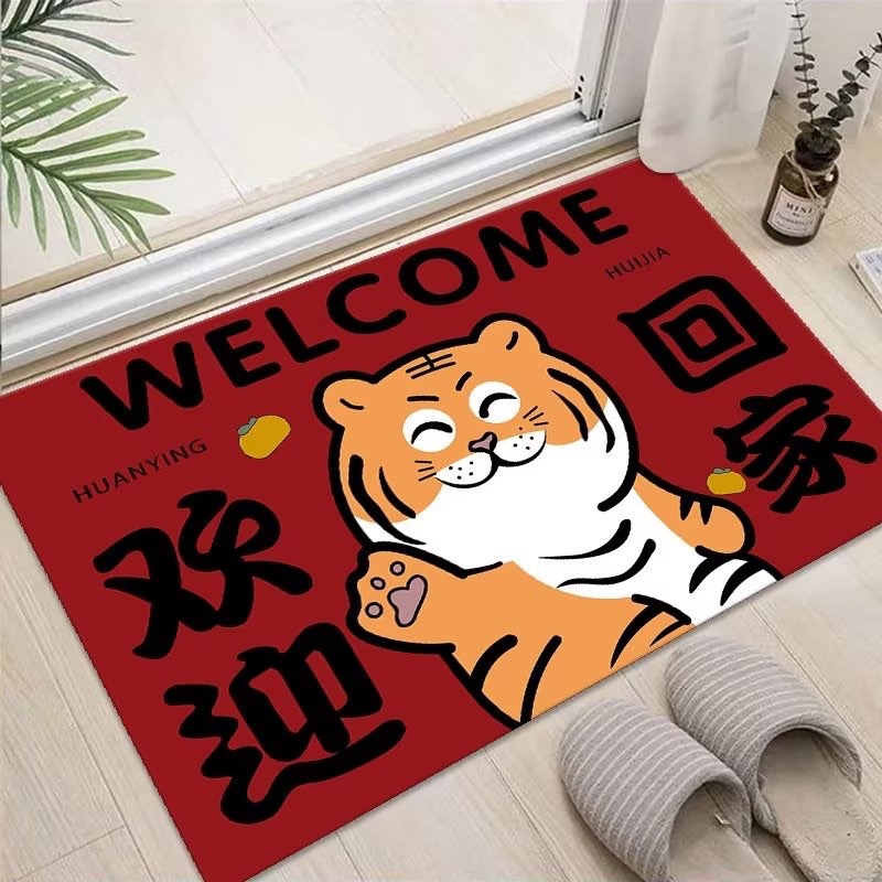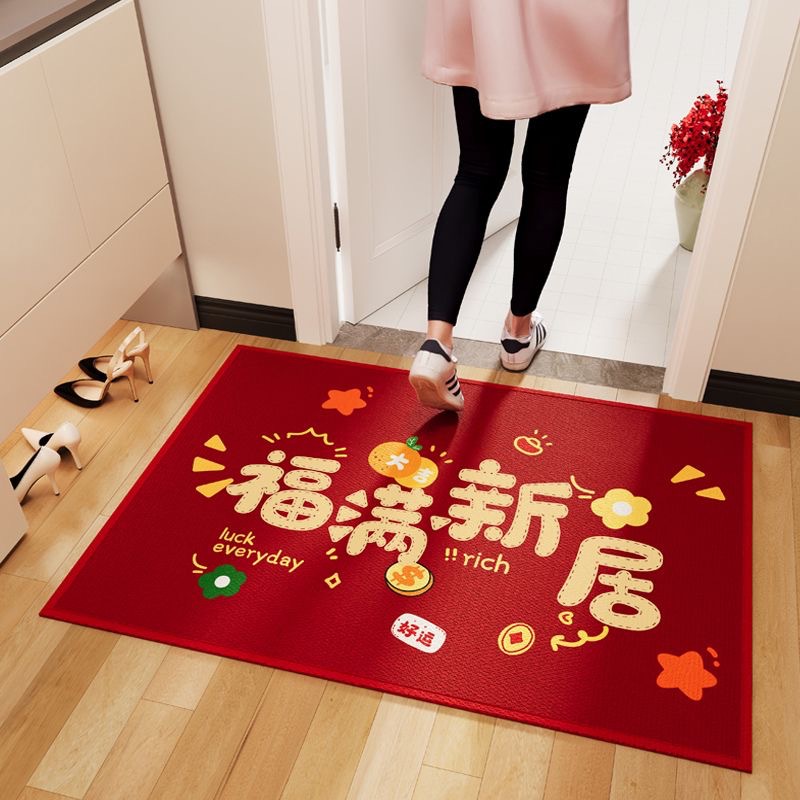 평화롭고 기쁨이 넘치는 현관매트, 붉은색 축제매트, 미끄럼방지, 내마모성, 새해문매트, 광고매트