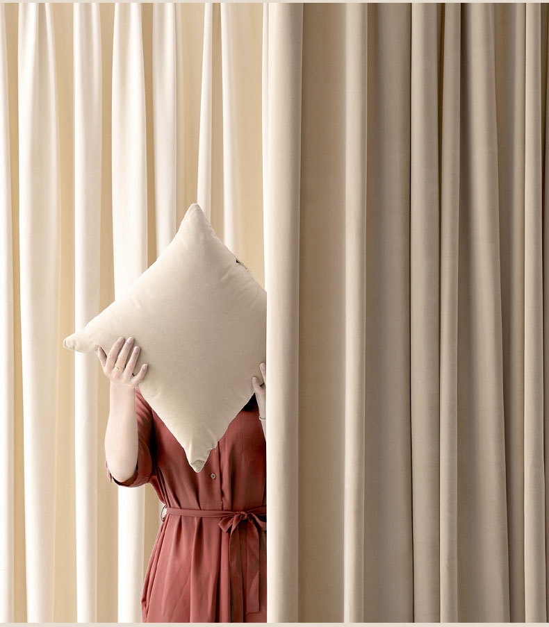 가벼운 럭셔리 크림 컬러 양털 커튼 침실 거실 밀크 티 컬러 차양 커튼 스티칭 완성 된 커튼 크로스 보더스토어 가기