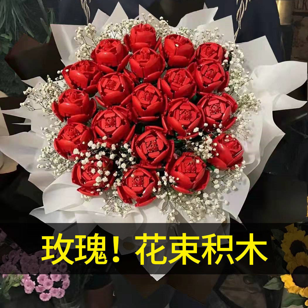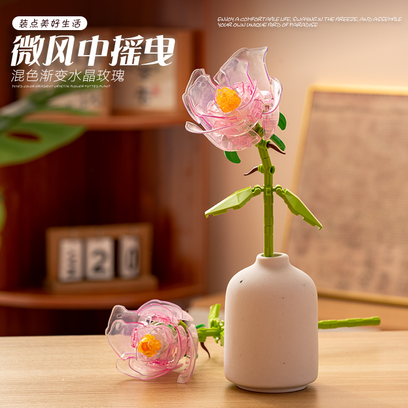 장미 빌딩 블록 선물, 영원한 꽃 조립 퍼즐 DIY 장식품, 작은 입자 발렌타인 데이 수제 선물