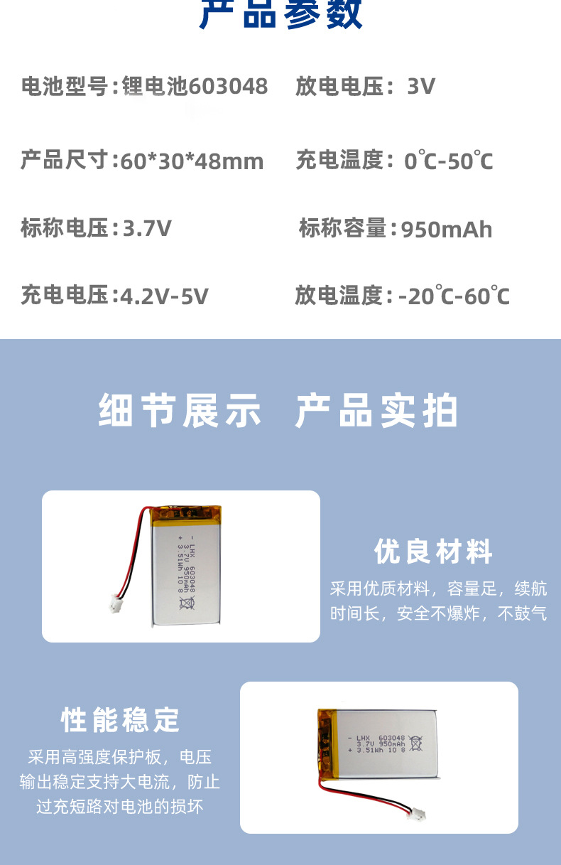 603048 폴리머 리튬 배터리 950mAh 마사지기 분무기 공기청정기 안전 인증 삼원 리튬