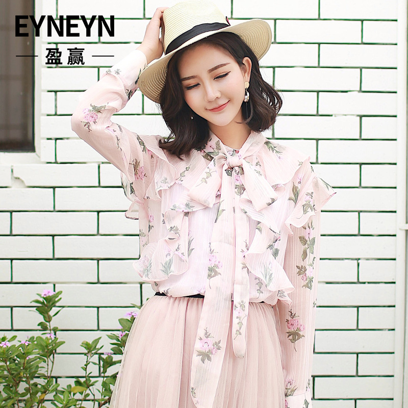 리얼 샷 봄 새로운 한국 쉬폰 셔츠 여성의 긴 소매 가디건 캐주얼 패션 신선한 달콤한 기본 셔츠 봄과 가을 패션