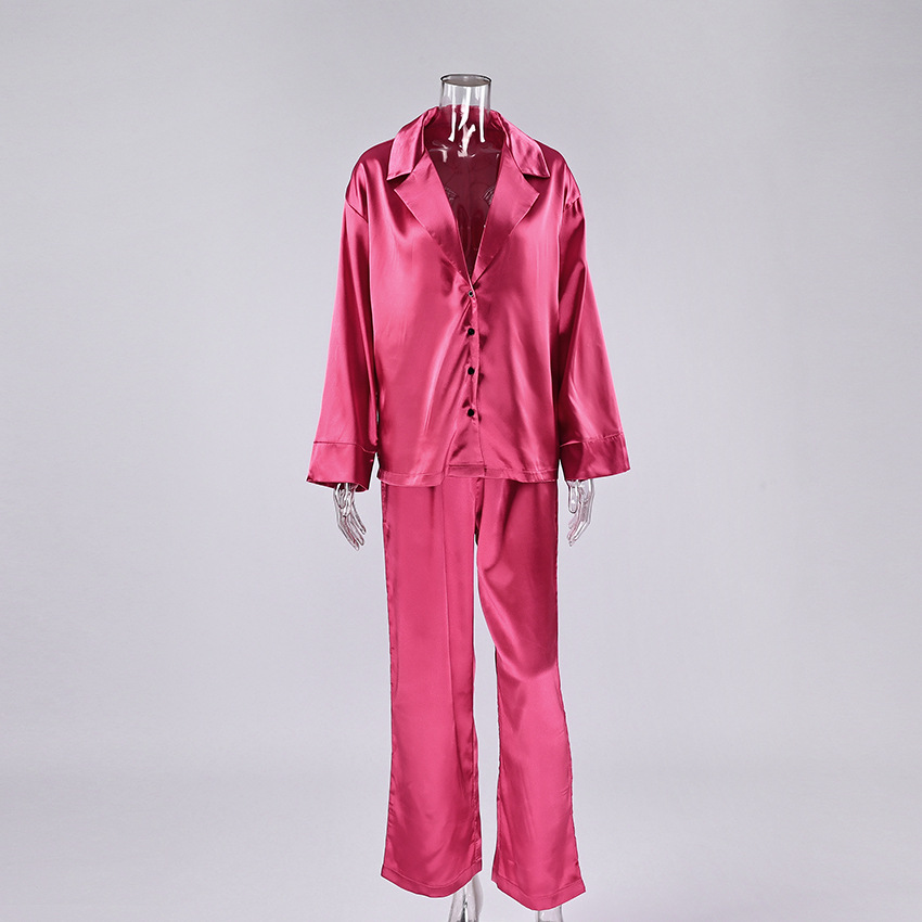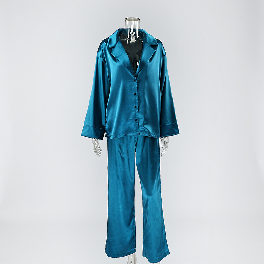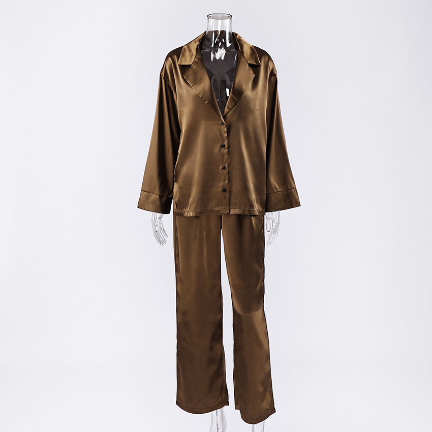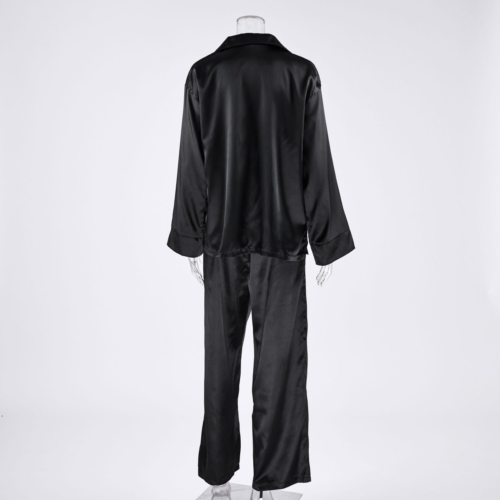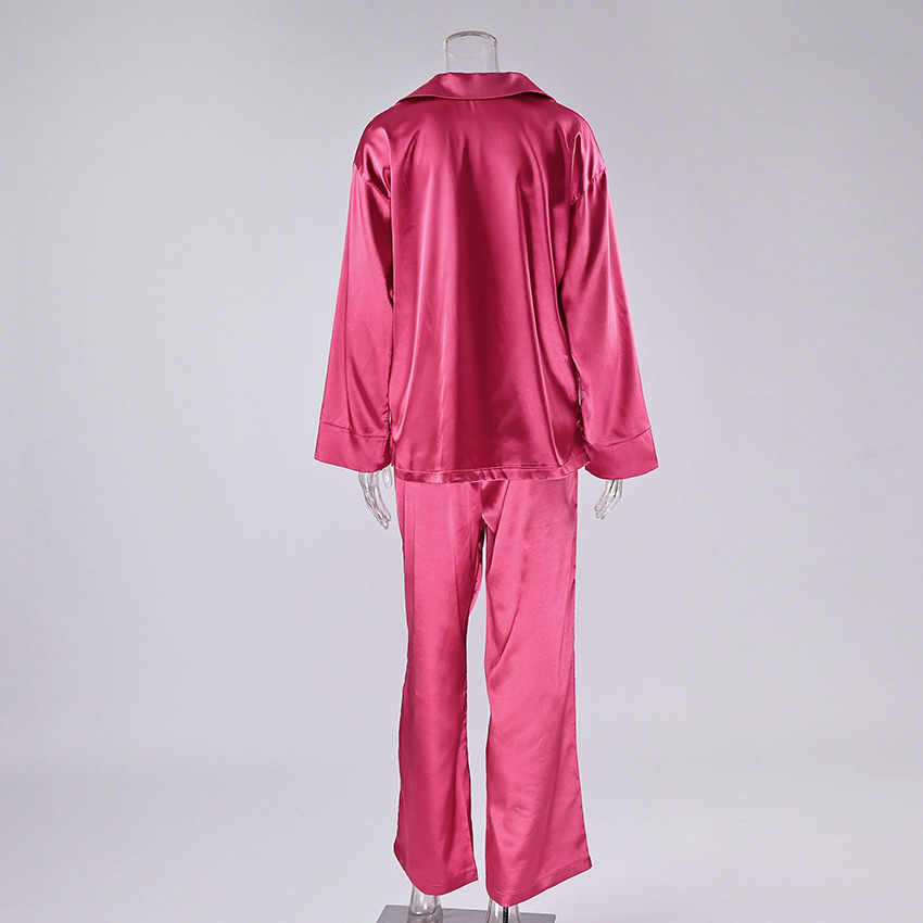 2026 봄 유럽 및 미국 여성 홈웨어 긴팔 세트, 인조 실크 셔츠, 얇은 긴바지, 투피스 잠옷