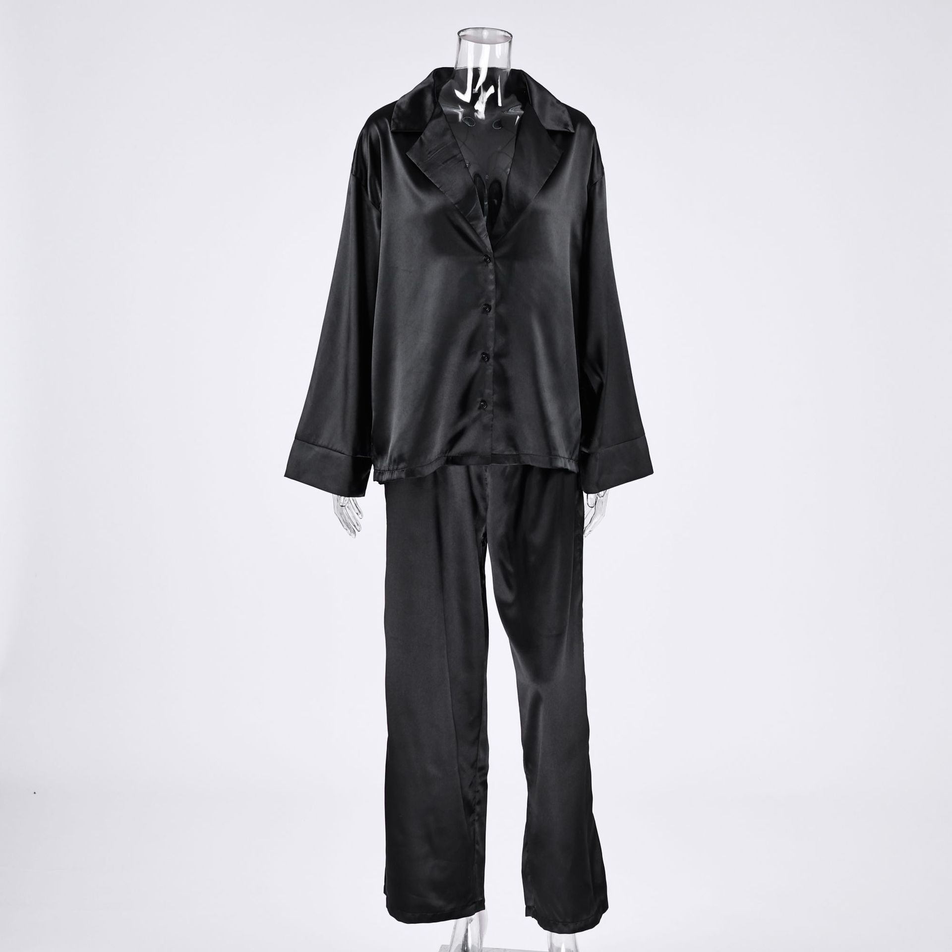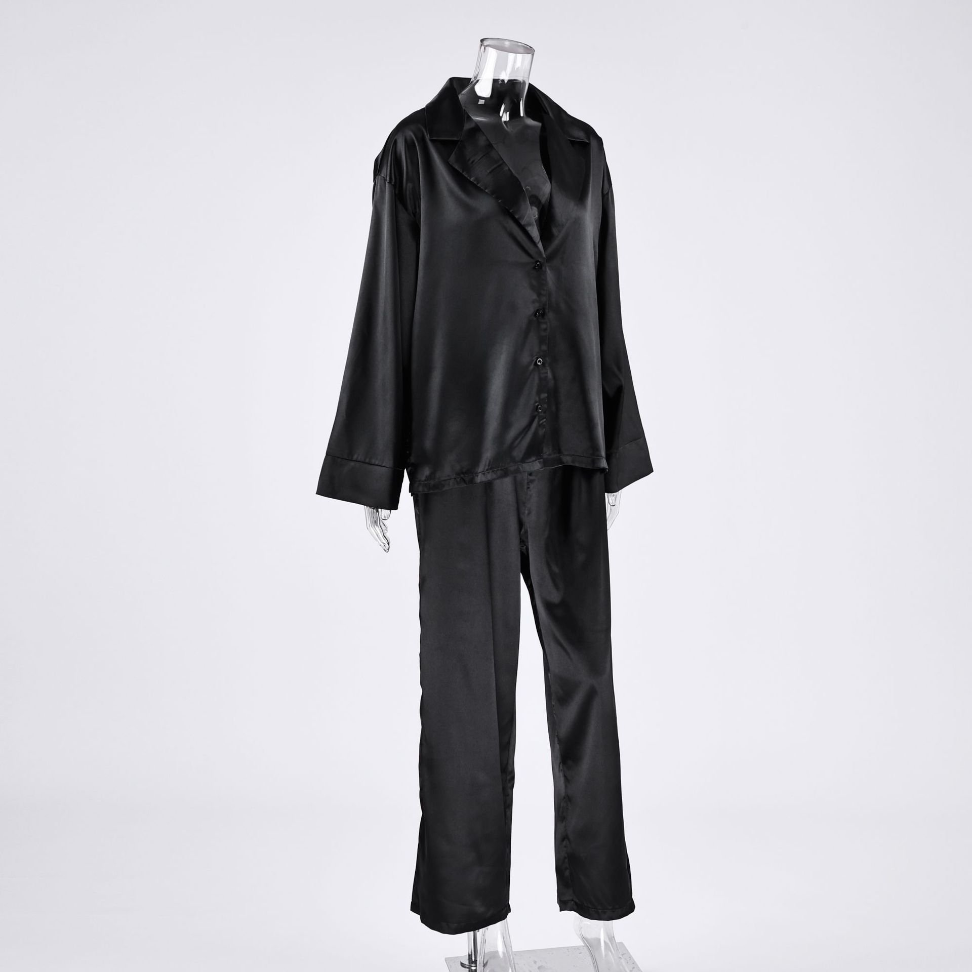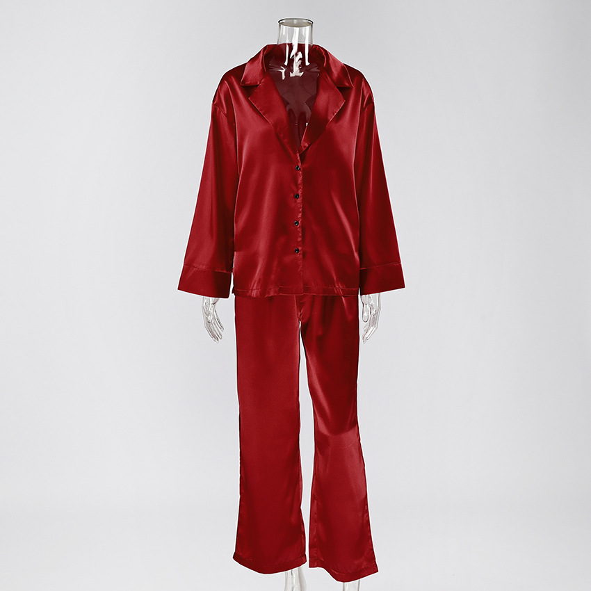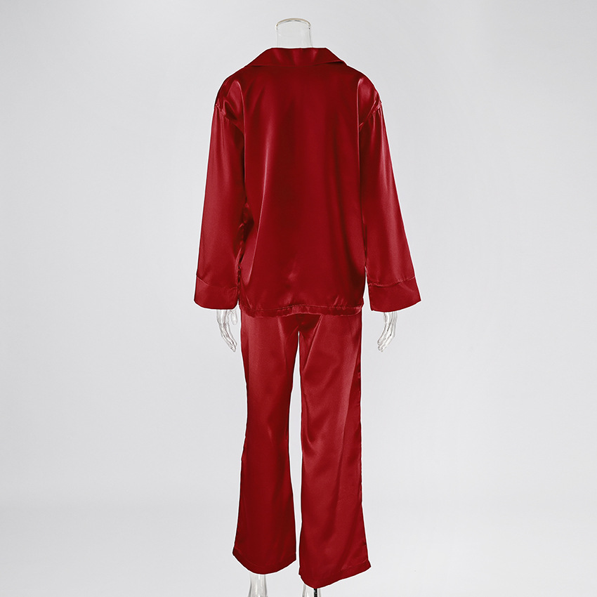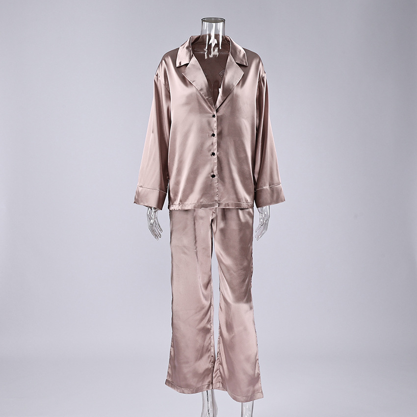 2026 봄 유럽 및 미국 여성 홈웨어 긴팔 세트, 인조 실크 셔츠, 얇은 긴바지, 투피스 잠옷