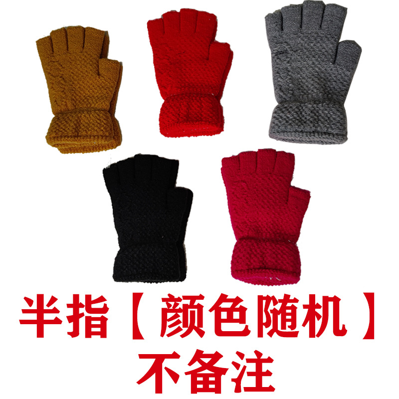 겨울용 두 손가락 노출형 터치스크린용 반바늘 자카드 기모 보온 니트 플러시 학생용 두꺼운 반손가락 장갑 성인용스토어 가기