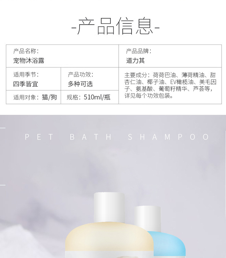 다올리치 애완동물 샤워젤 510ml 강아지 고양이 샴푸 바디 클렌징 고양이 샤워젤 도매