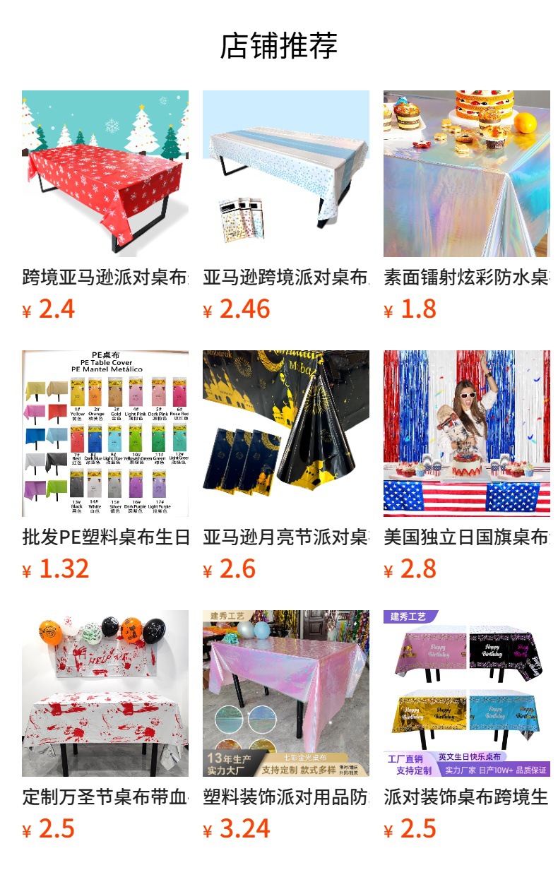 아마존 크로스 국경 휴일 파티 장식 식탁보 캠핑 일회용 플라스틱 식탁보 파티 용품 테이블 천스토어 가기