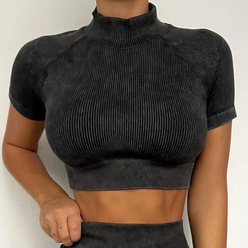 재고 INS 크로스 보더 새로운 sandwash 원활한 요가 세트 여자의 늑골 긴 소매 스포츠 피트니스 세트 하이 웨이스트 엉덩이 바지