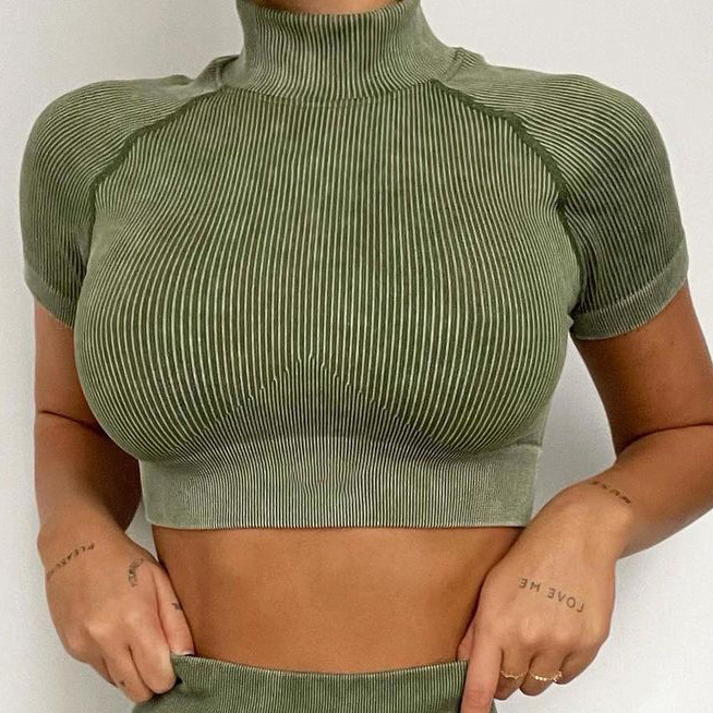 • 올리브 그린 터틀넥 짧은 소매