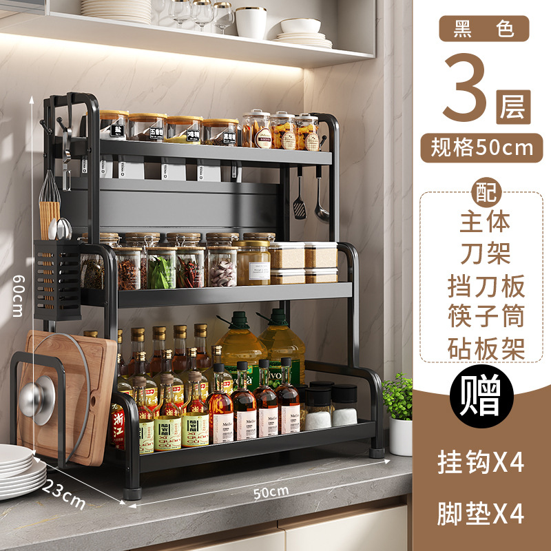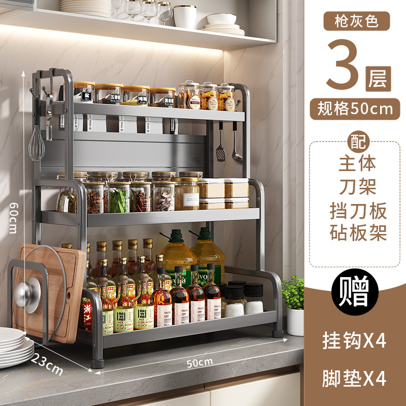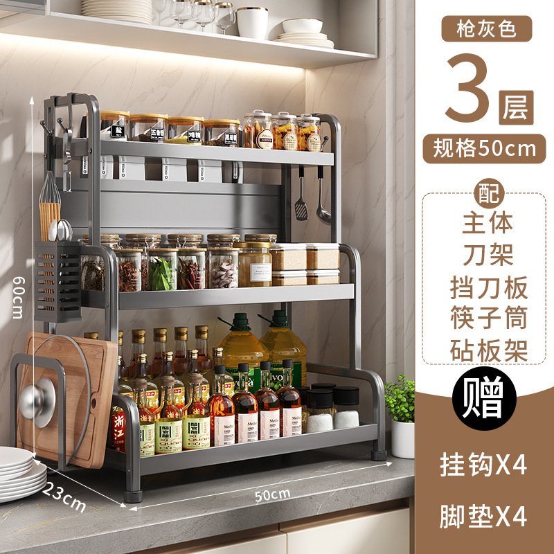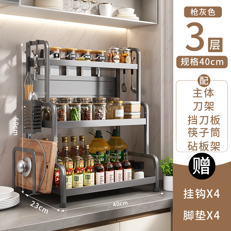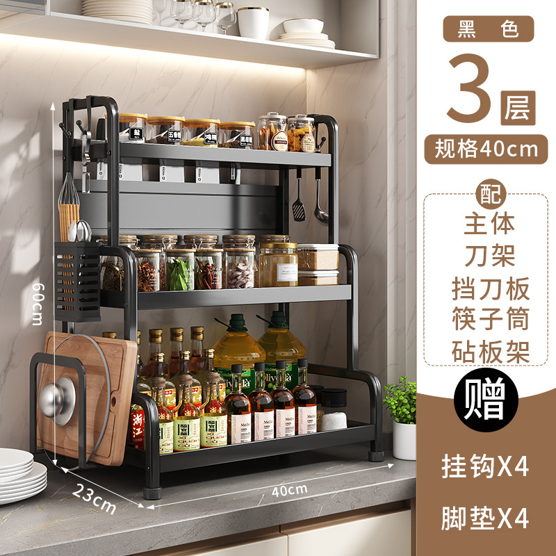 가정용 주방 수납 선반 다층 조미료 병 디스플레이 랙 젓가락 칼 홀더 도마 수납 선반 계층형 수납 선반스토어 가기