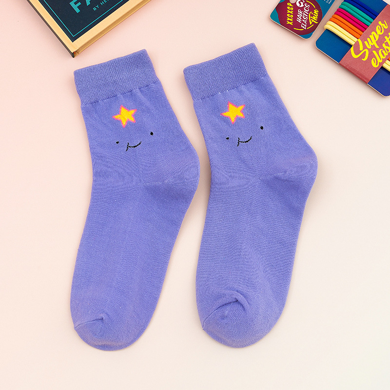 재고 도매 귀여운 여성 양말 모험 Qibao 시리즈 여자의 중간 길이 양말 스타일 소녀 유행 양말 여자의면 양말