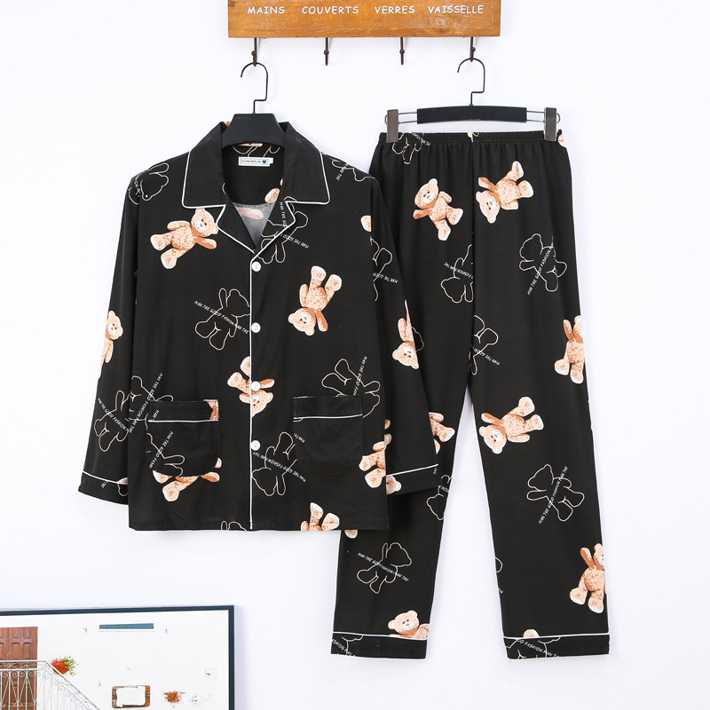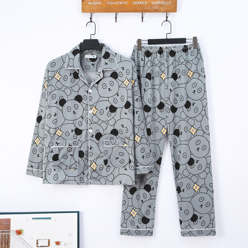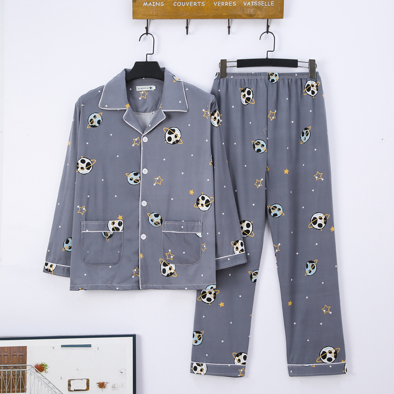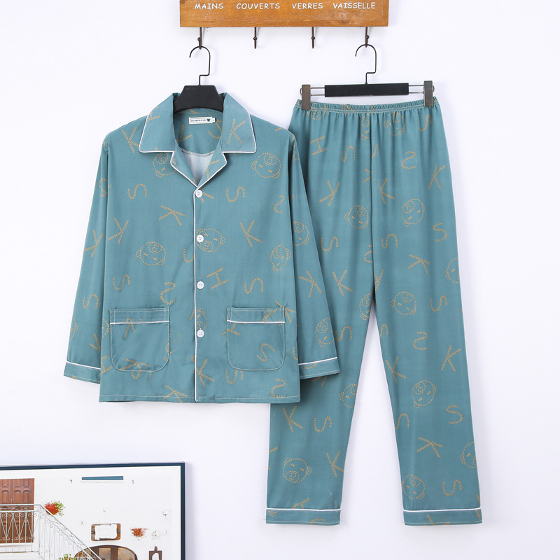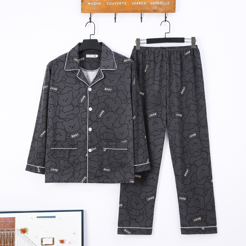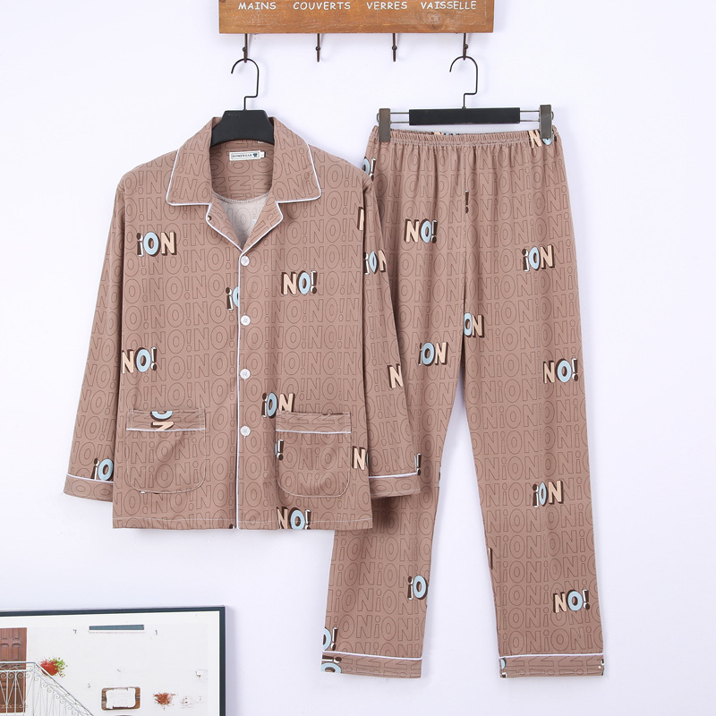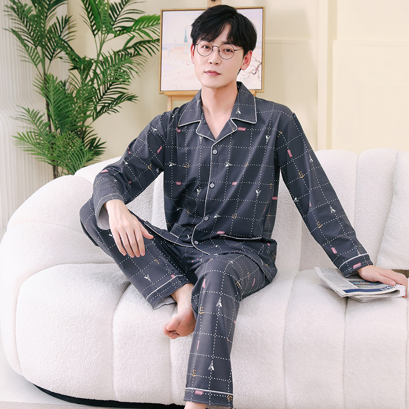 남자의 봄과 가을 겨울 잠옷 남자의 도매 인쇄 긴 소매 카디건 옷깃 니트 면 가정 옷 세트 크로스 보더스토어 가기