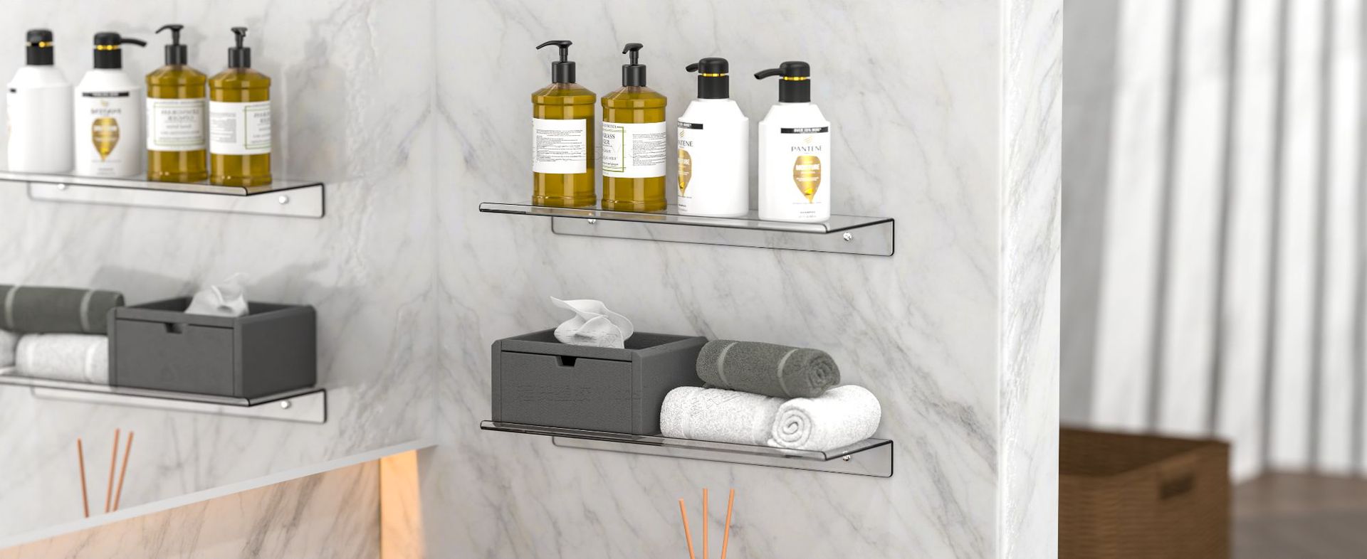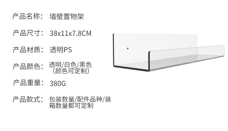 벽걸이 선반 아크릴 벽걸이 책장 욕실 장식 수납 선반 무타공 도매