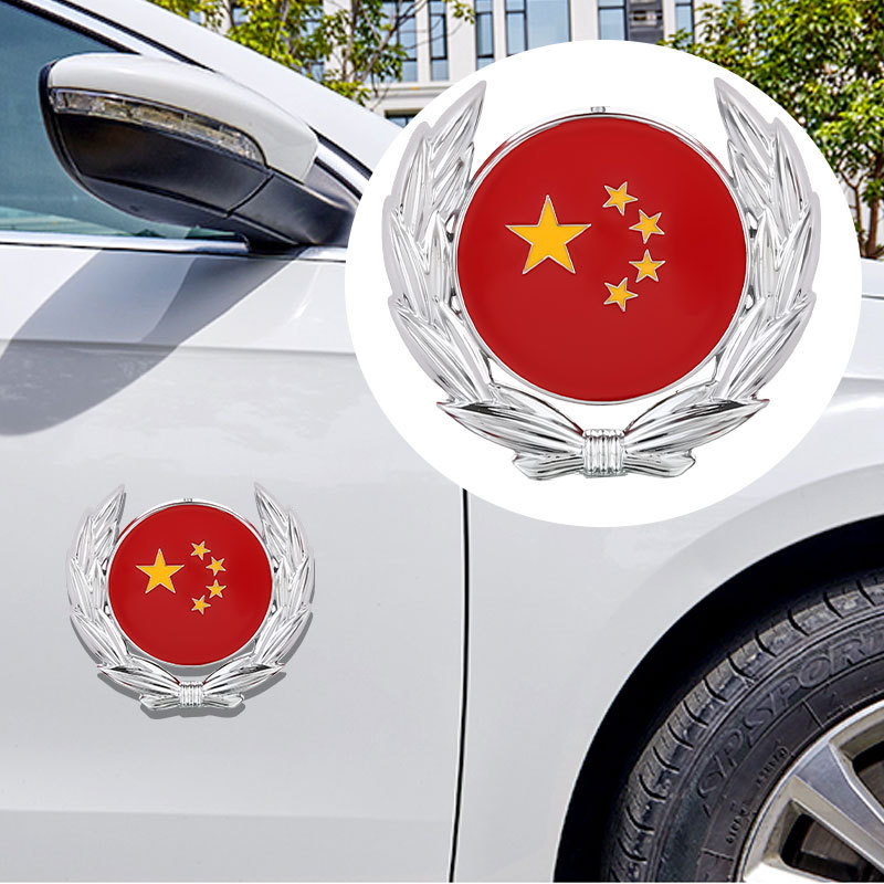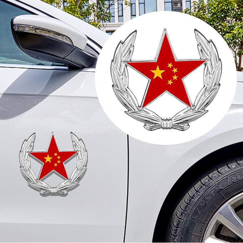 자동차 5 성급 붉은 깃발 창조적 인 자동차 스티커 밀 귀 국기 3D 자동차 스티커 금속 자동차 장식 스티커 사이드 스티커 꼬리 스티커