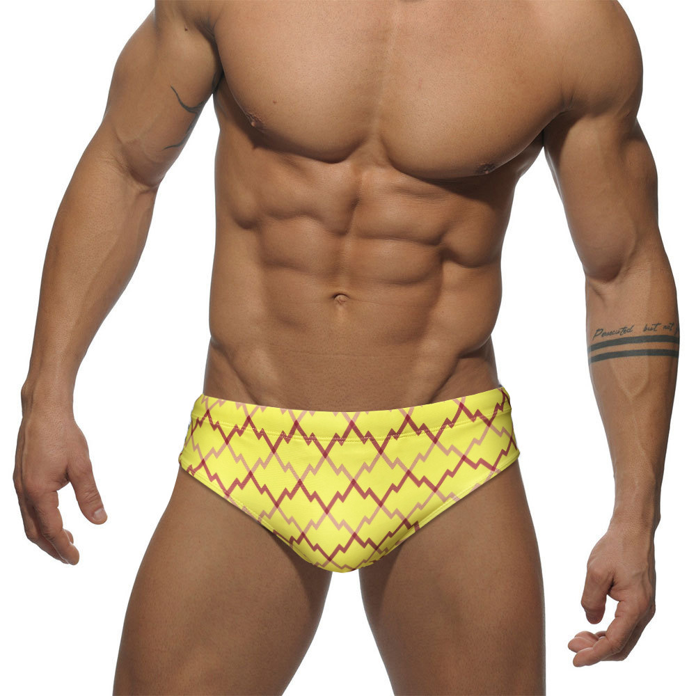 JESSBORN 격자 무늬 수영 트렁크 남성용 삼각형 섹시한 낮은 허리 당황 방지 수영 트렁크 속건 전문 크로스 보더 수영복스토어 가기