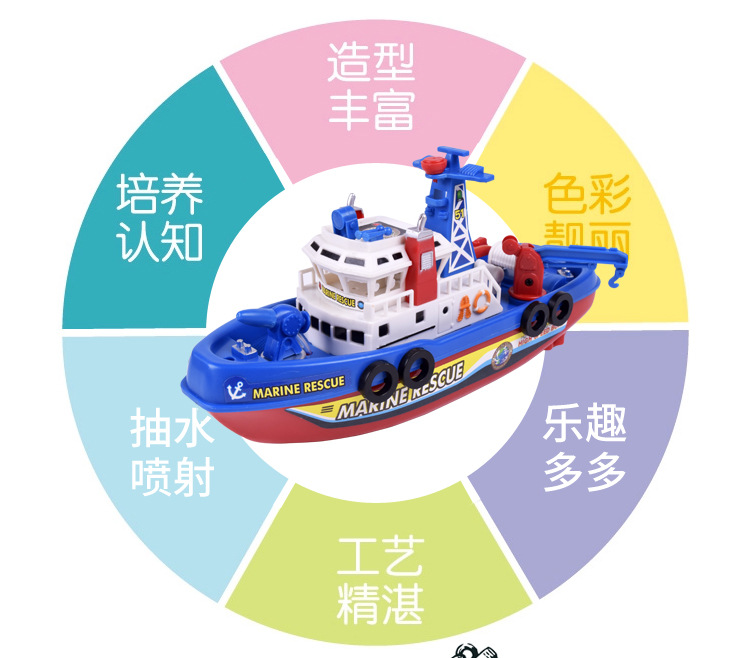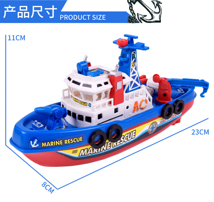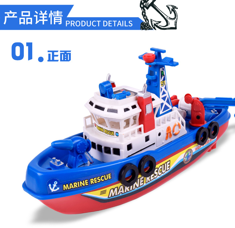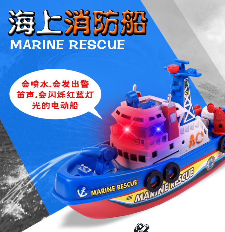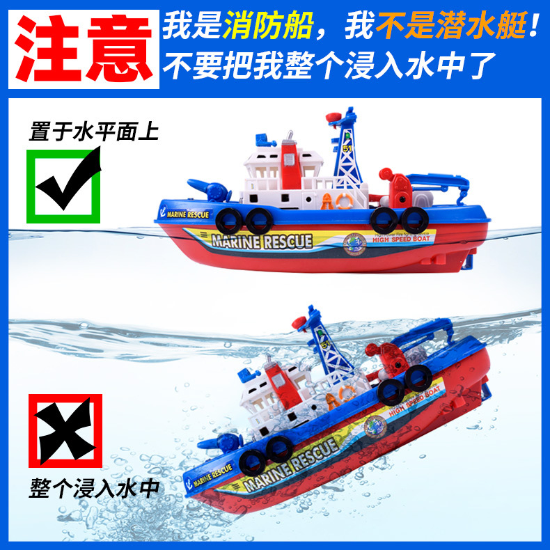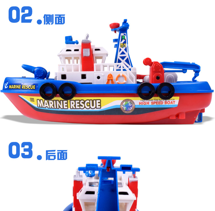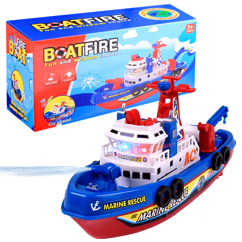 국경 간 빛나는 물 제트 장난감 보트 어린이 목욕 물 놀이 화재 보트 전기 선박 장난감 도매 야시장 마구간스토어 가기