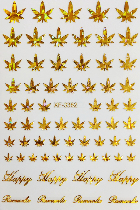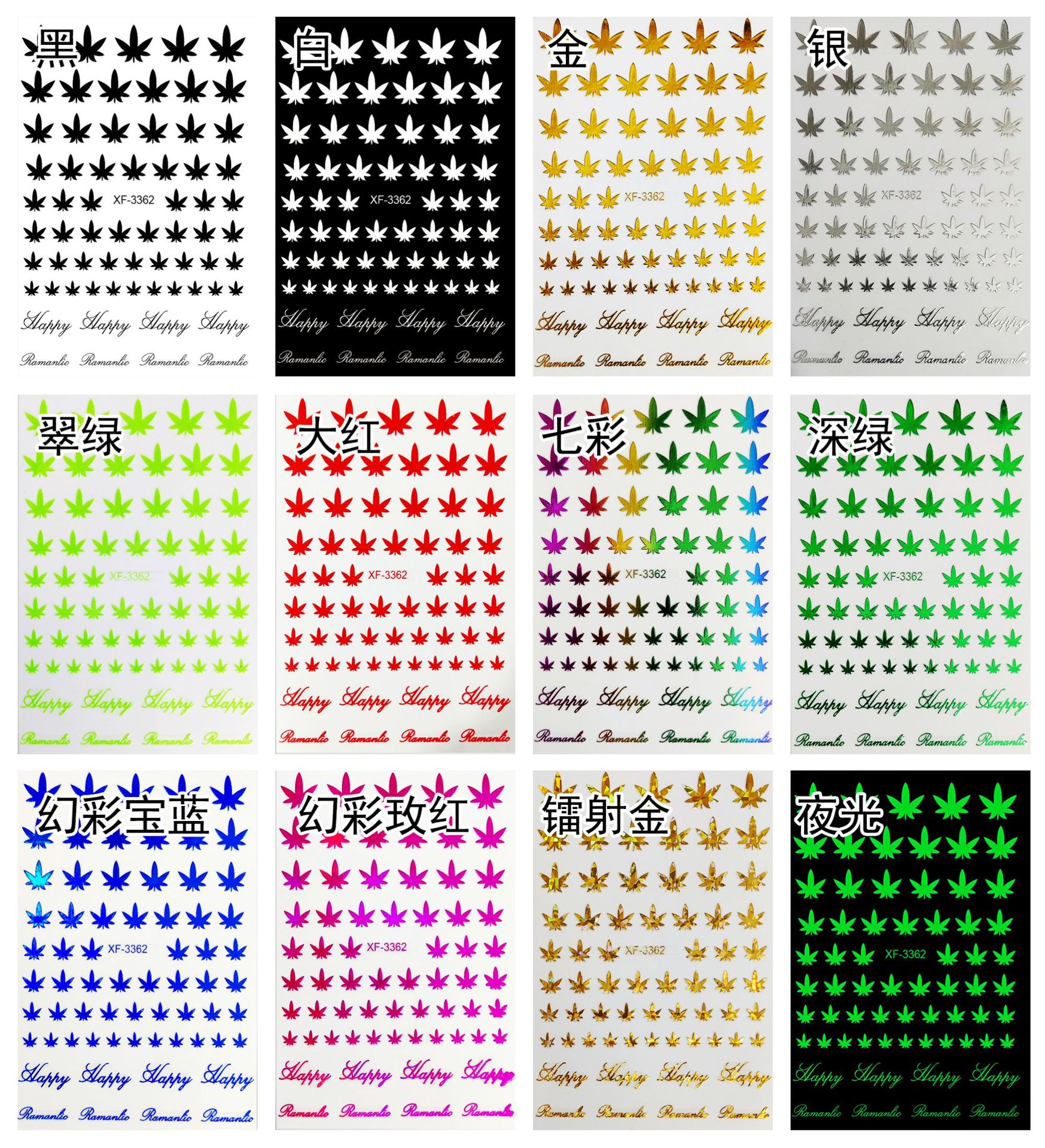XF3362 크로스 보더 공급 12 컬러 리프 네일 스티커 네일 스티커