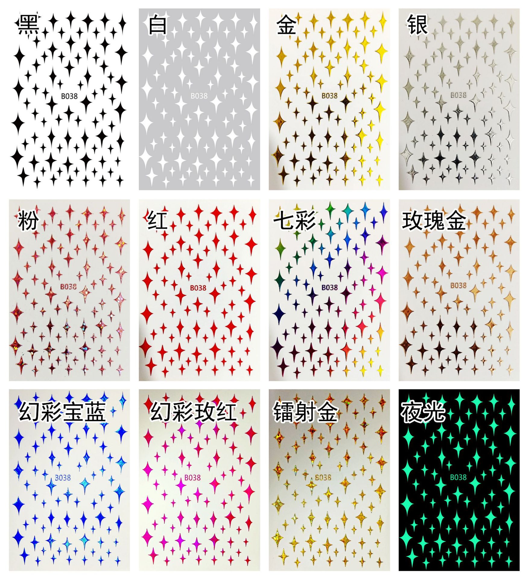B038 跨境货源 美甲贴 指甲贴 有背胶 十字星 12色 可分套装
