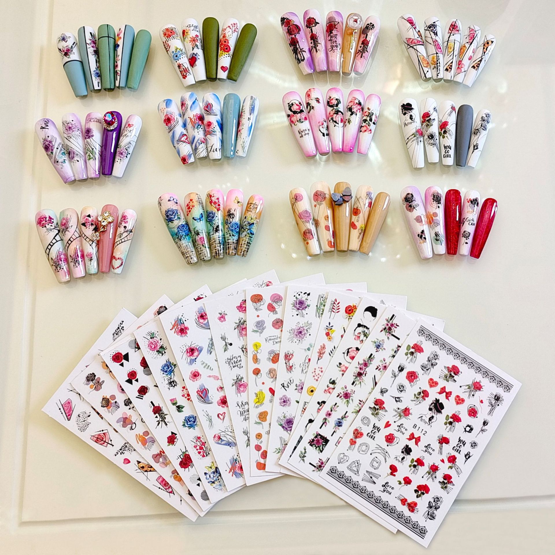 B111-B122 跨境货源 美甲贴 指甲贴 玫瑰花 春夏12款