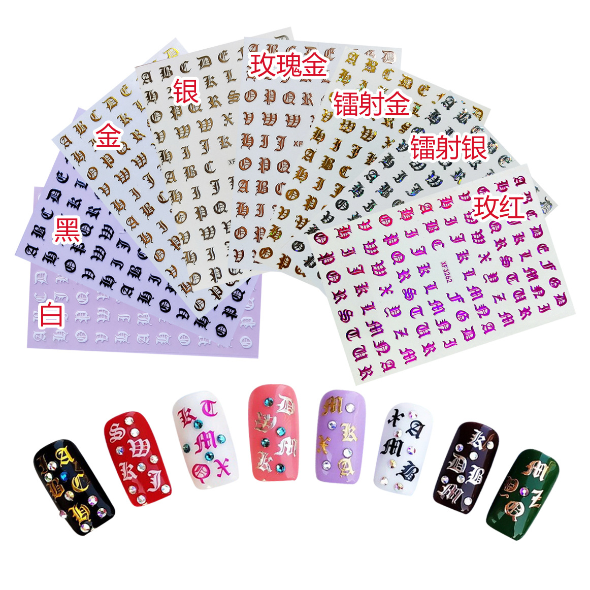 XF3359 跨境货源 12色 复古英文字母 指甲贴 美甲贴