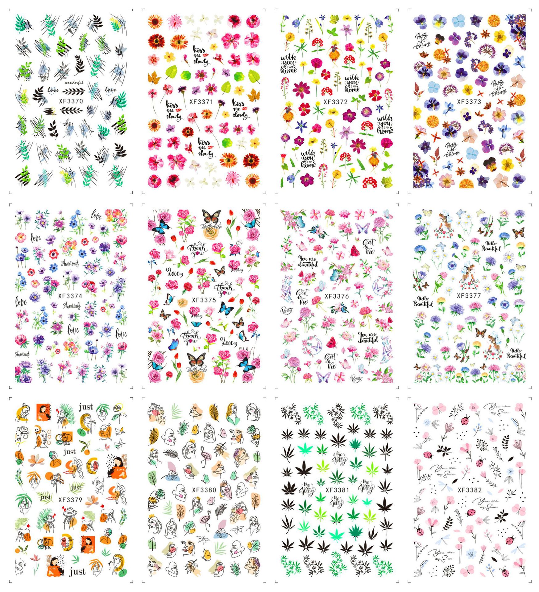 XF3370-XF3382 跨境货原 美甲贴 指甲贴 花草 12款 可分装套装