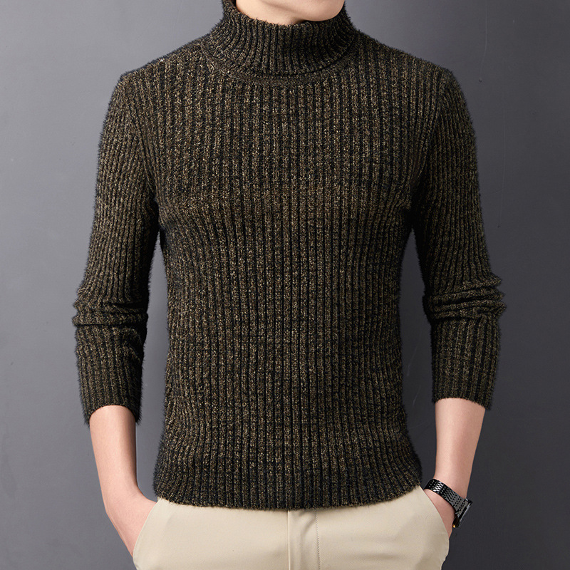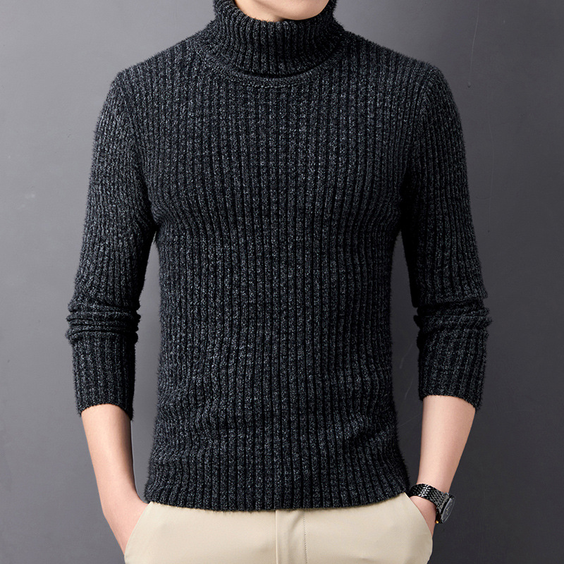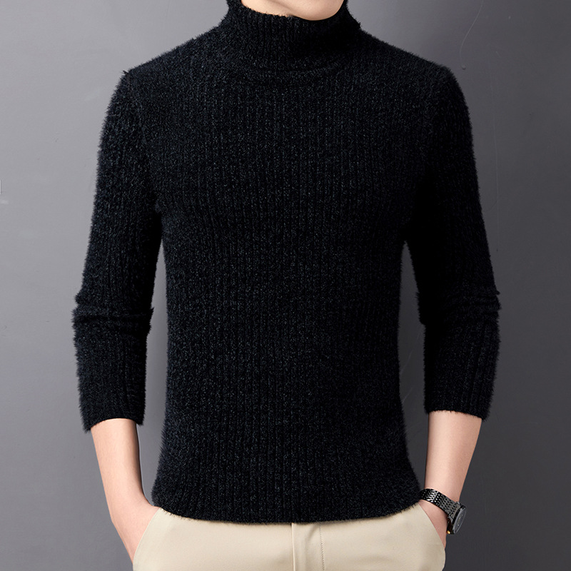 베이스 더블 라펠 스웨터 남성용 겨울 새로운 유행 따뜻한 단색 두꺼운 모조 밍크 벨벳 터틀넥 스웨터