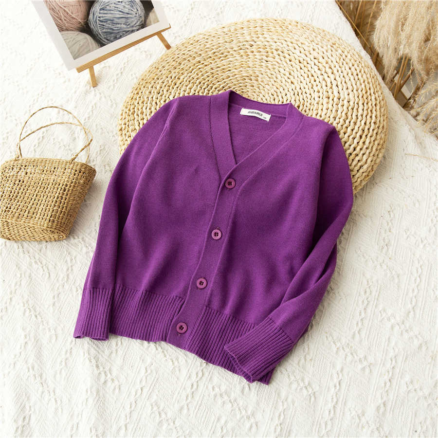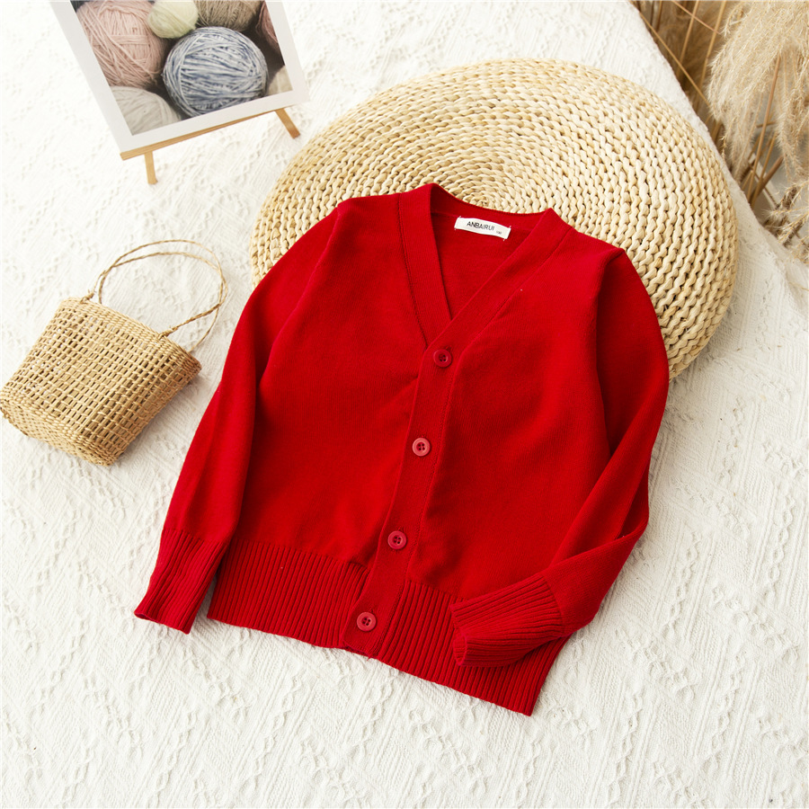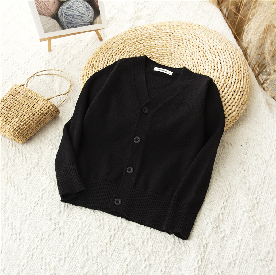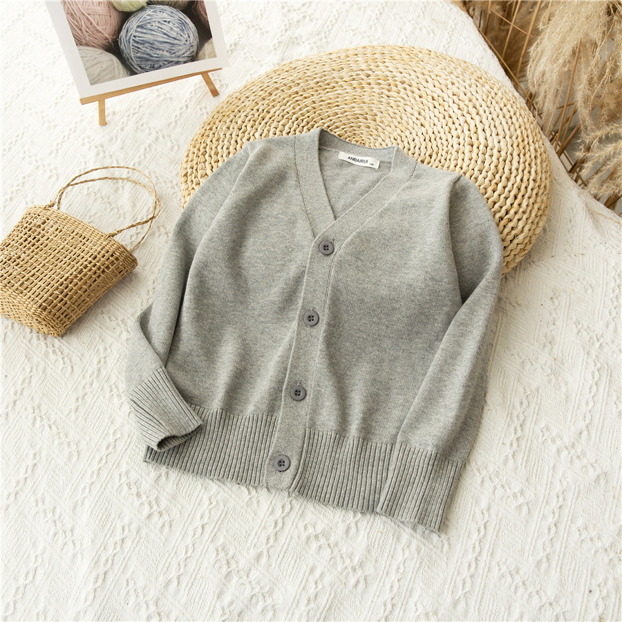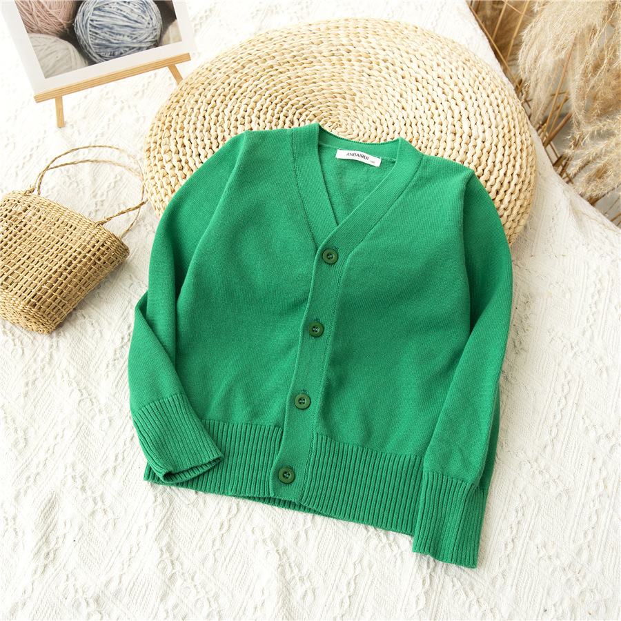 2021 년 봄 한국식 남여공용 아동 스웨터 단색 카디건 면 긴팔 V넥 교복 스웨터