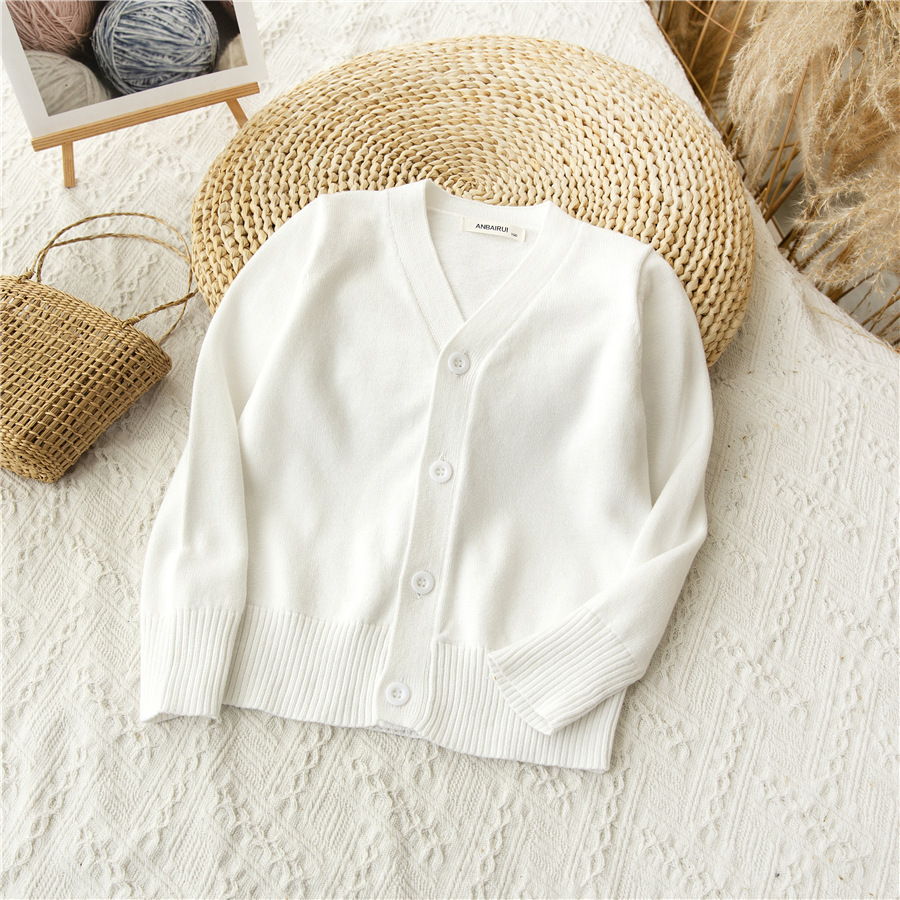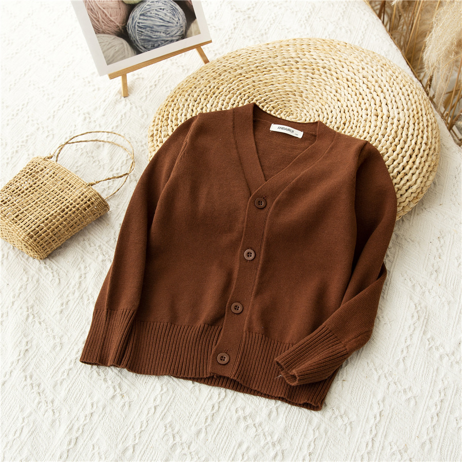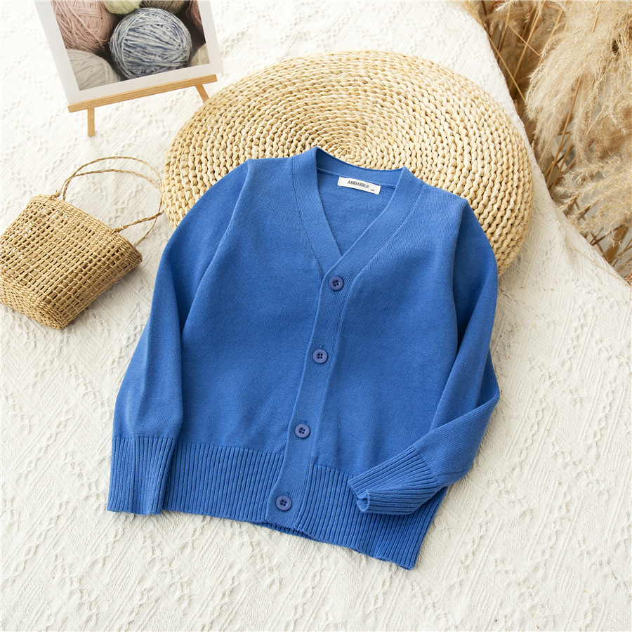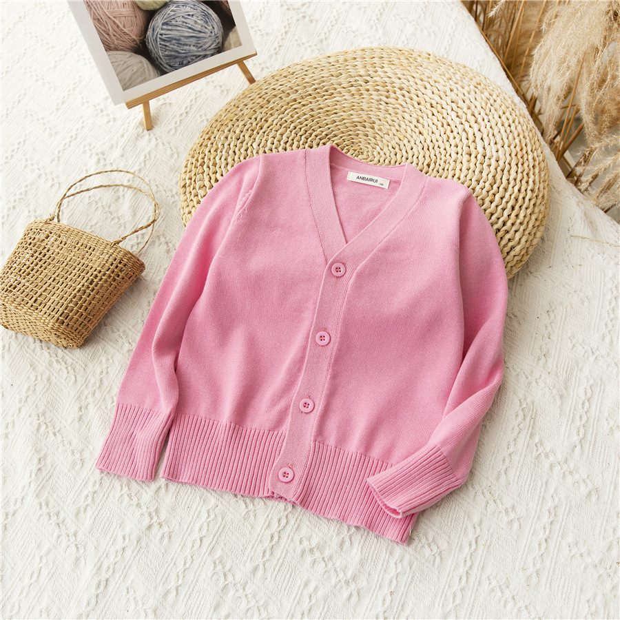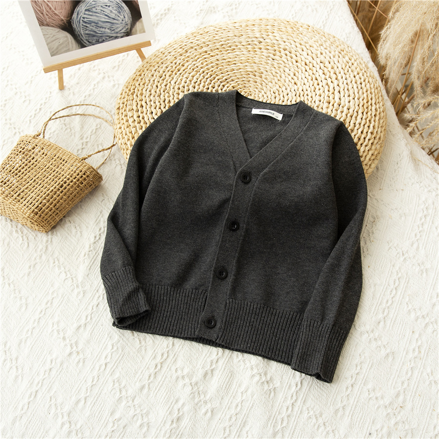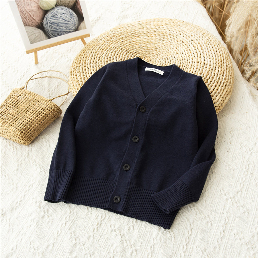 2021 년 봄 한국식 남여공용 아동 스웨터 단색 카디건 면 긴팔 V넥 교복 스웨터