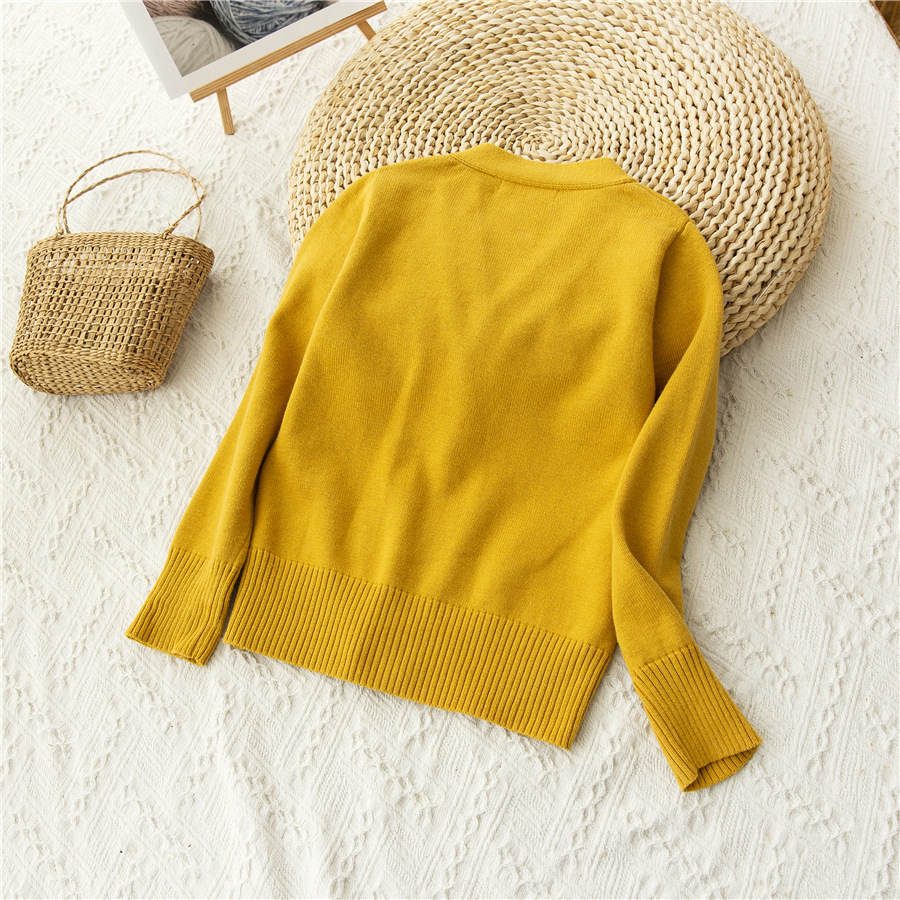 2021 년 봄 한국식 남여공용 아동 스웨터 단색 카디건 면 긴팔 V넥 교복 스웨터스토어 가기