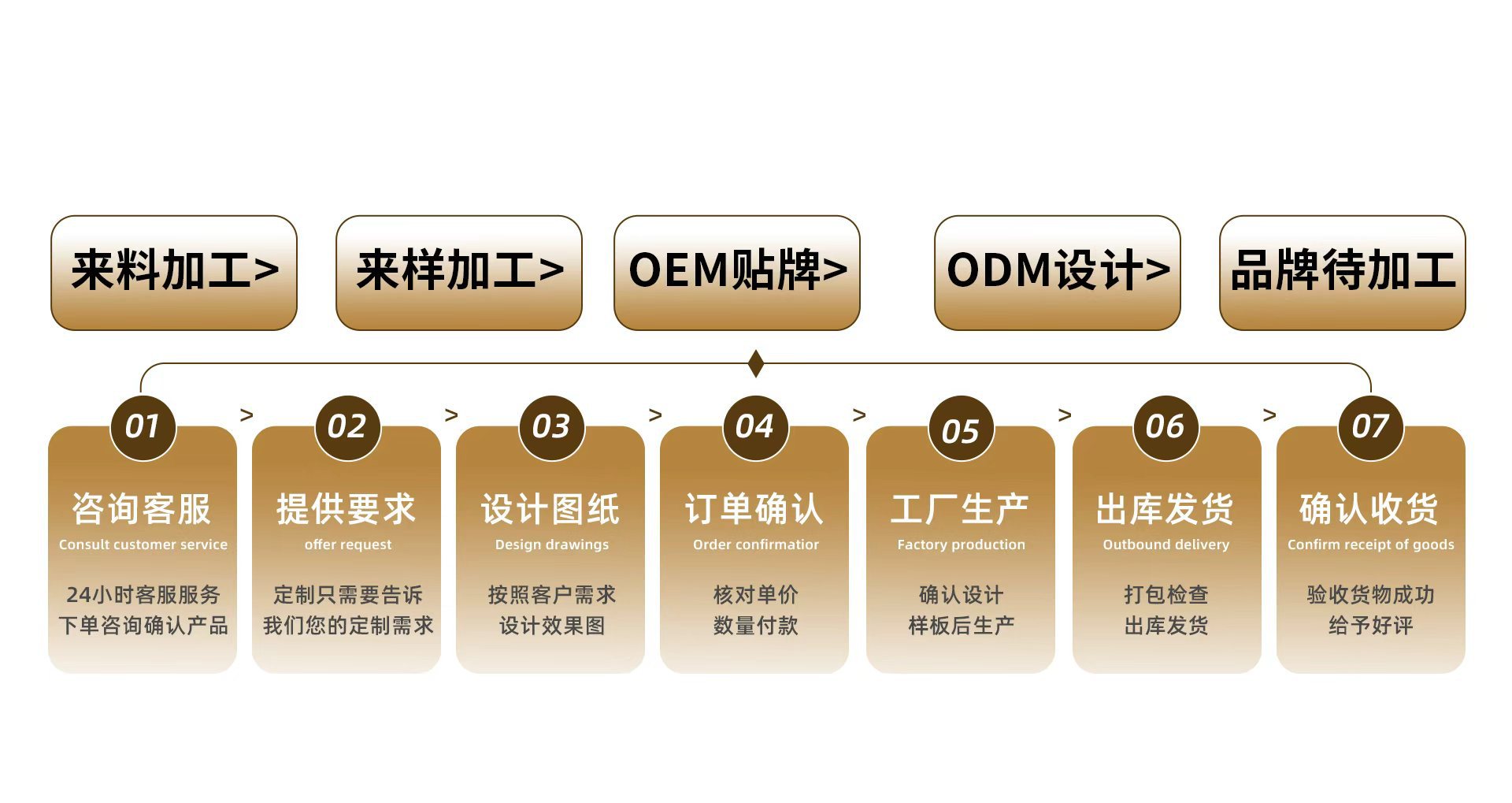 3、正式订单:双方确认订单产品款式、数量、材质、单价、(产品可以压印LOGO也可订做金属等不同材质LOGO)及交货时间,签订双方平等合作业务合同;备注订做金属LOGO起订量需要跟客服沟通。