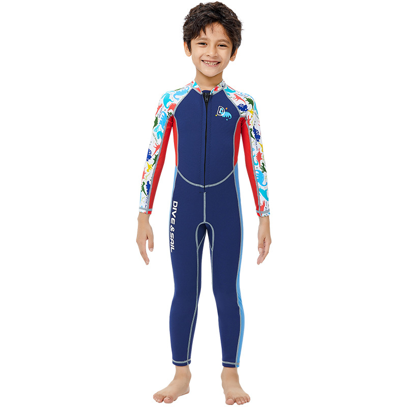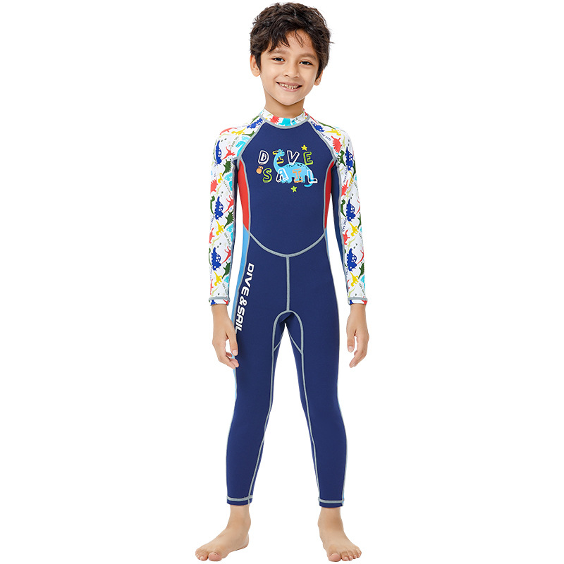 새로운 2mm 어린이 다이빙 세트 남성용 중간 및 큰 어린이 따뜻한 수영복 원피스 긴팔 자외선 차단제 스노클링 서핑 해파리 세트