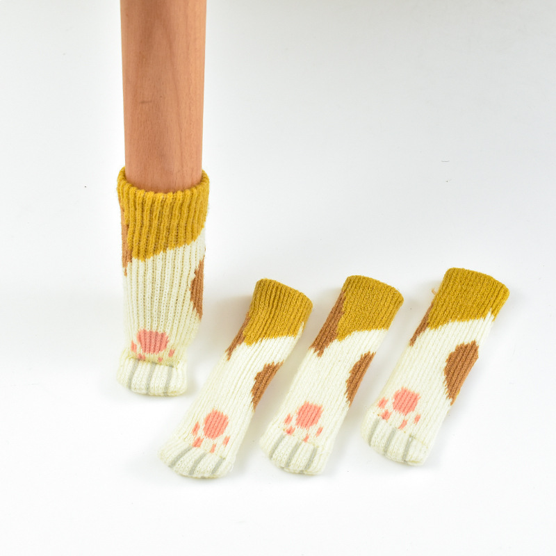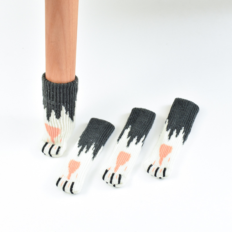테이블 및 의자 발 커버 니트 울 도어 핸들 장갑 보호 커버 충돌 방지 내마모성 실리콘 고양이 두꺼운 테이블과 의자 발 커버