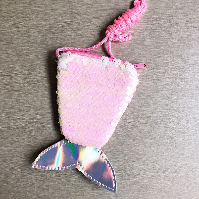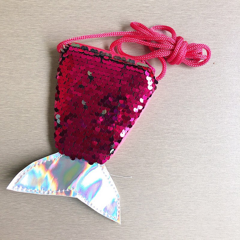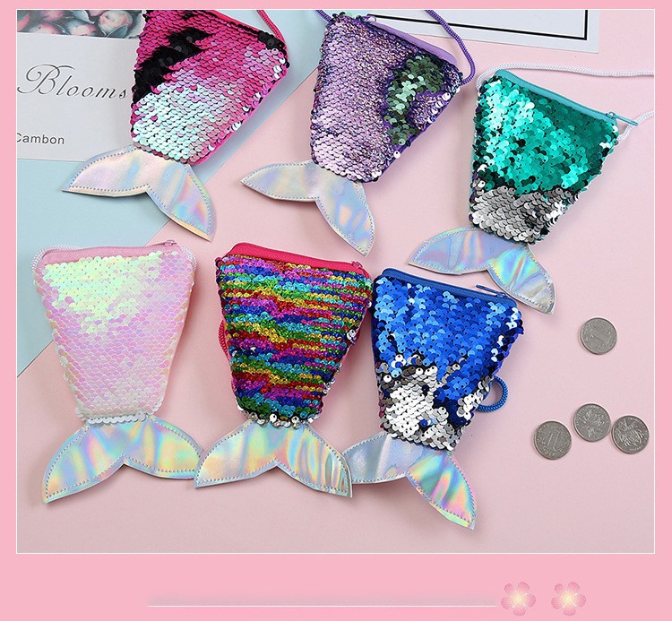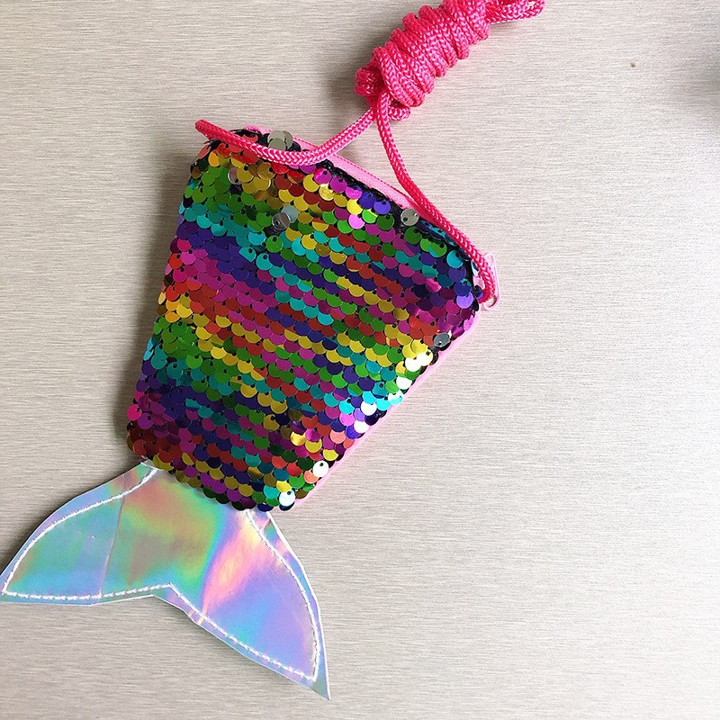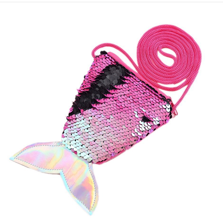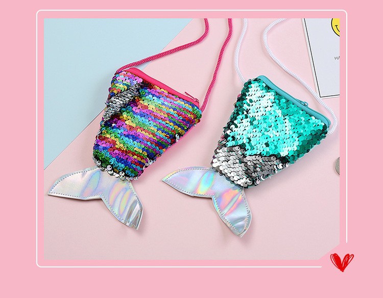 한국판 인어 꼬리 모양 크로스백, 만화풍 창의적인 어린이용 숄더백, 반짝이 장식의 작은 크로스백, 수납용 끈이 달린 동전 지갑