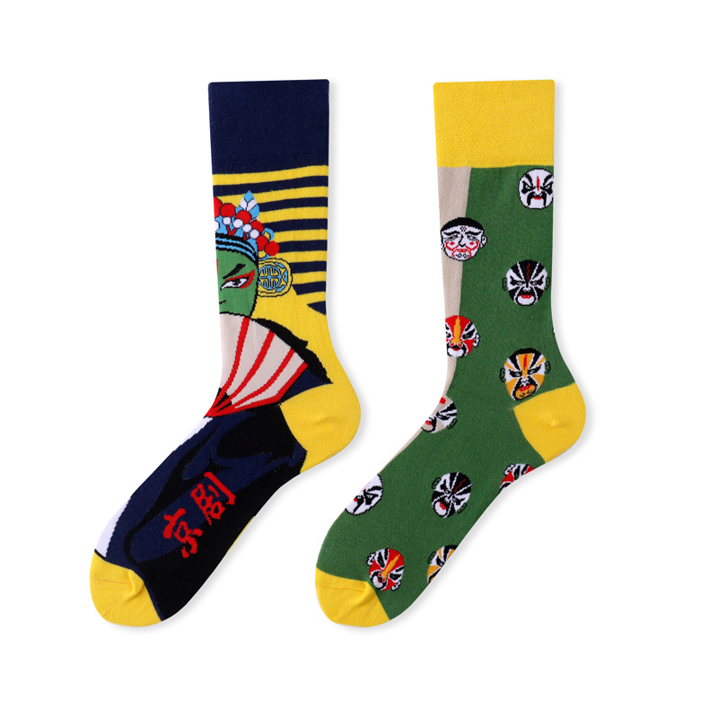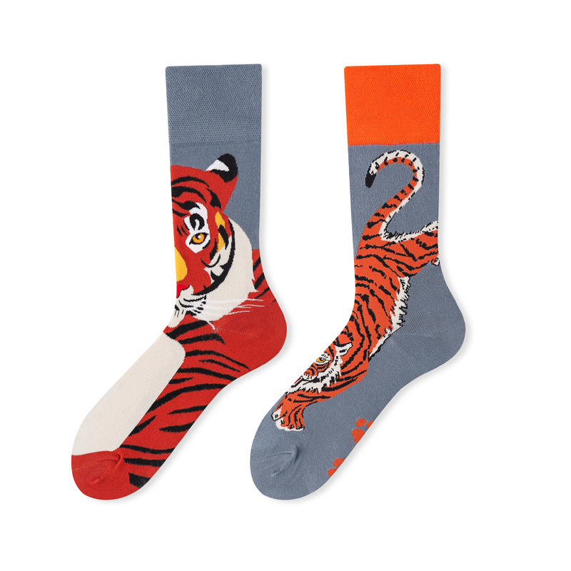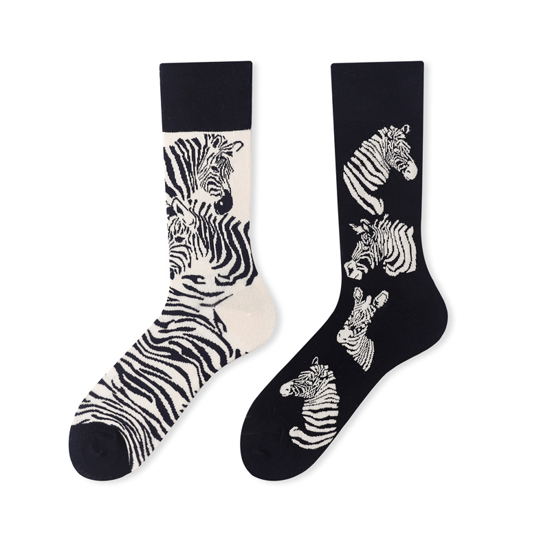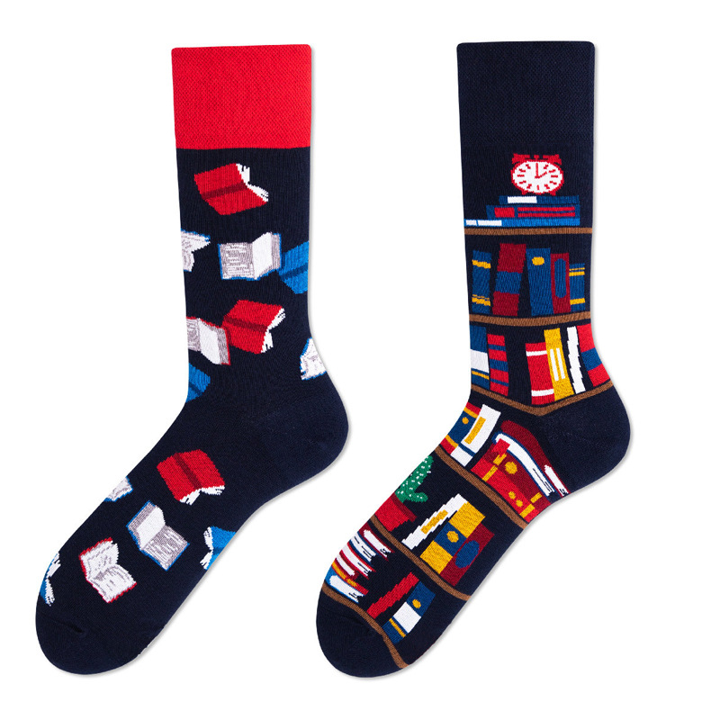 가을과 겨울 새로운 창조적 인 커플 AB 비대칭 조수 양말 패션 성격 트렌드 만화 자카드 긴 튜브면 양말스토어 가기