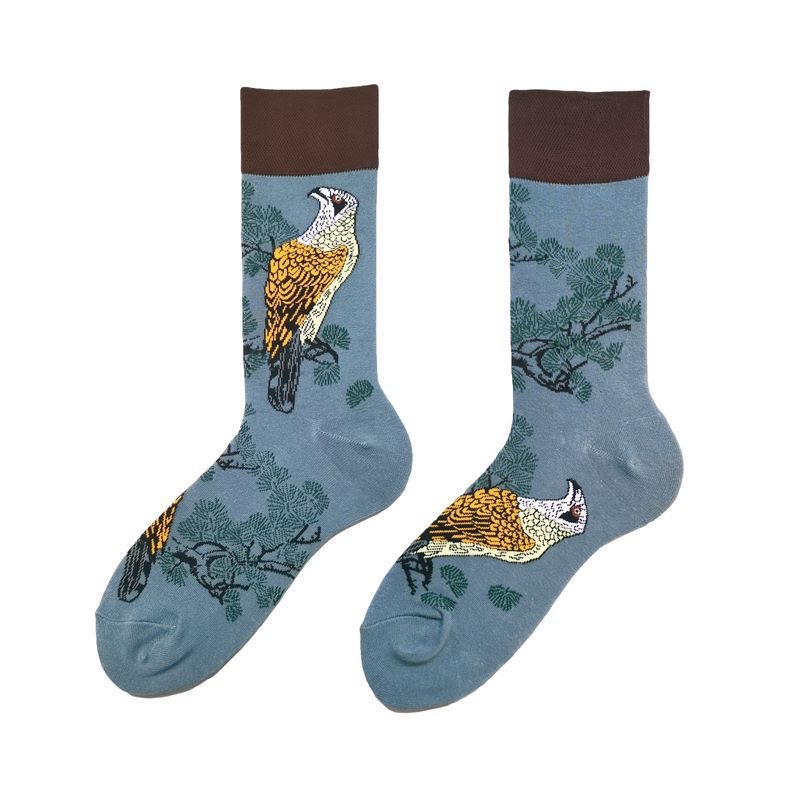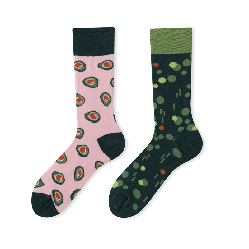 가을과 겨울 새로운 창조적 인 커플 AB 비대칭 조수 양말 패션 성격 트렌드 만화 자카드 긴 튜브면 양말