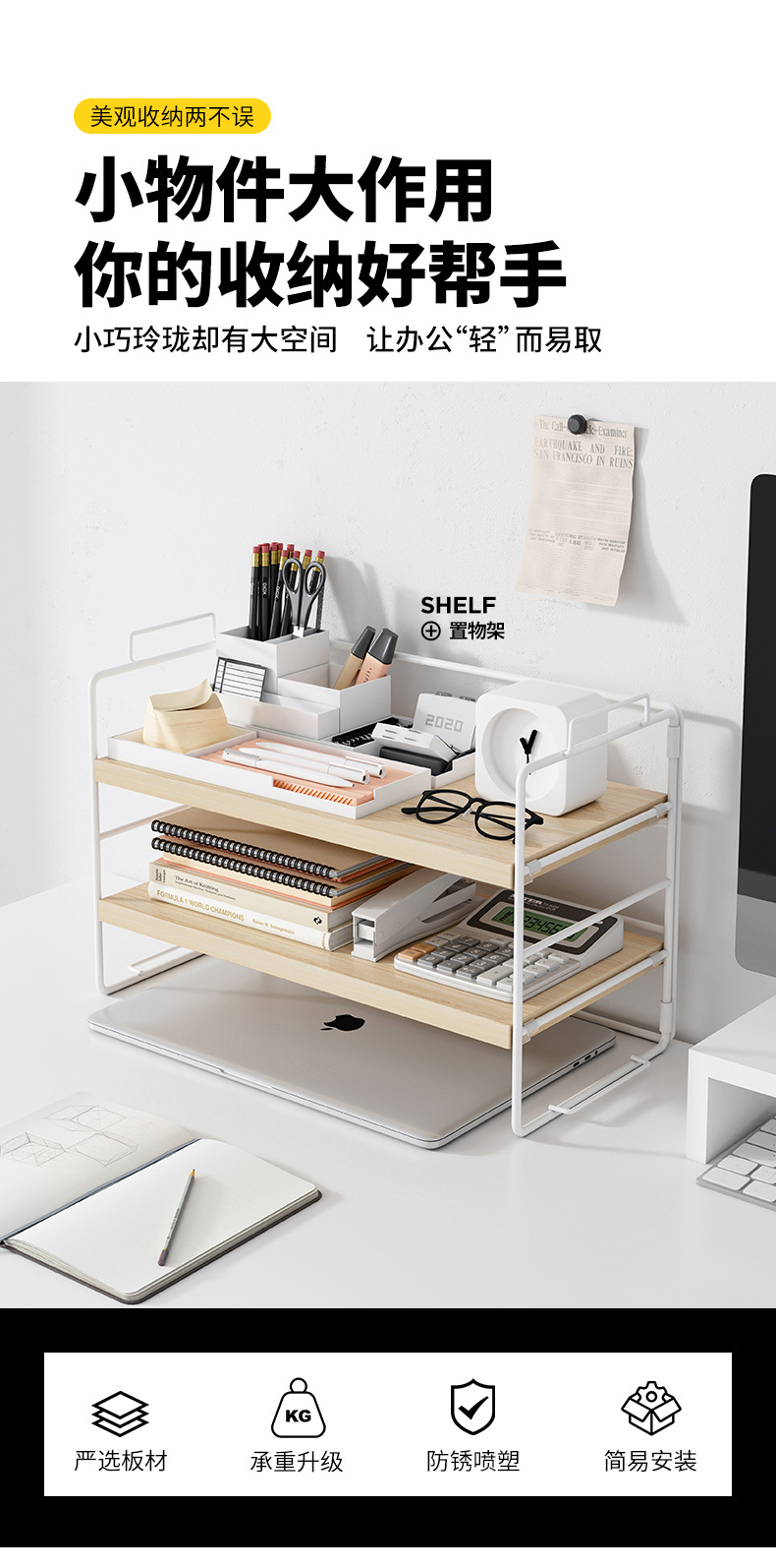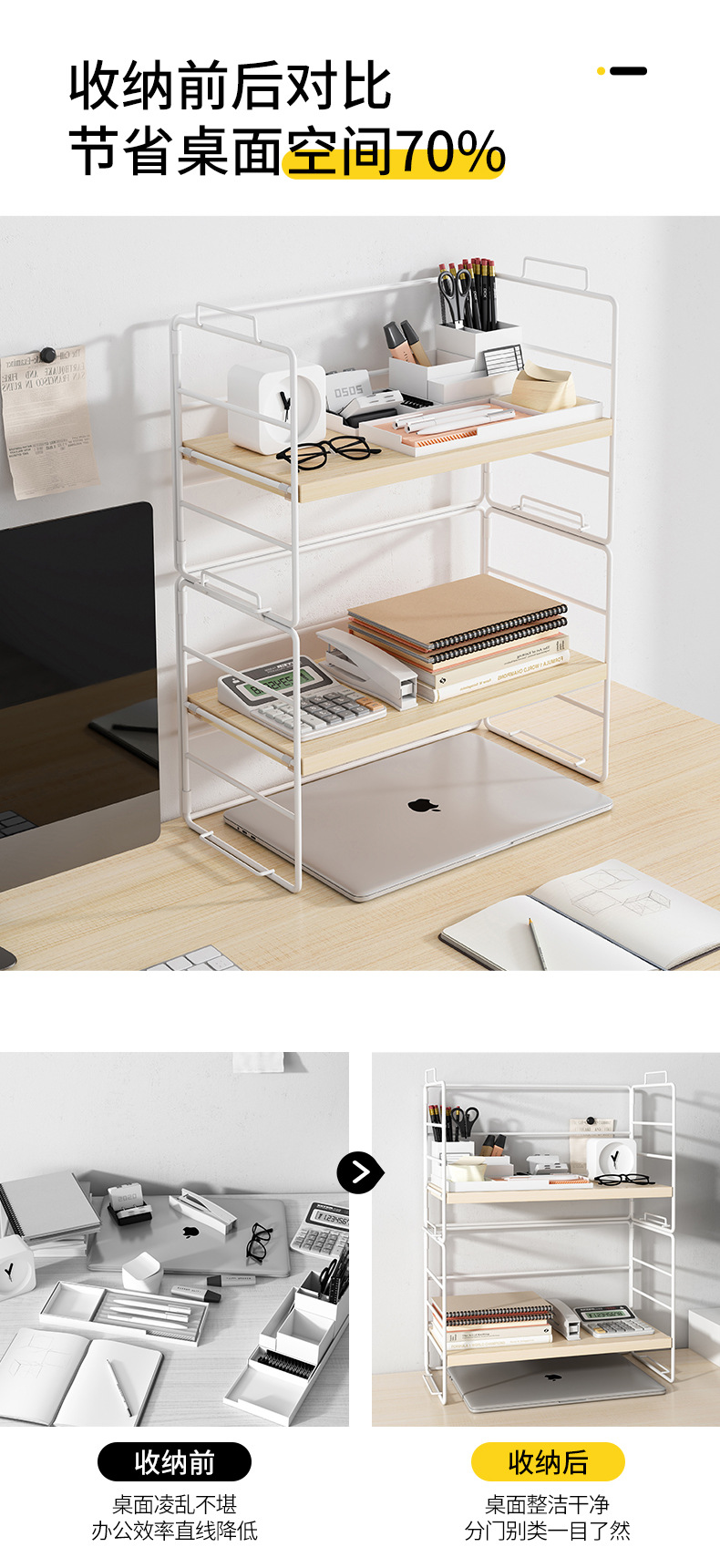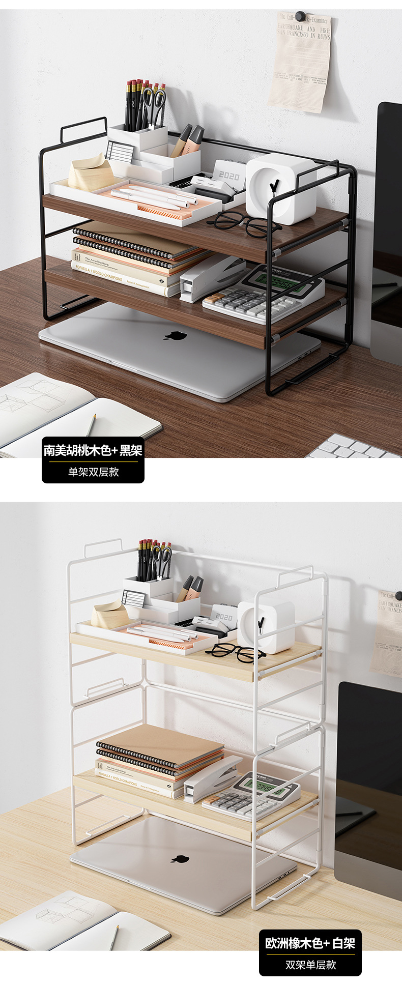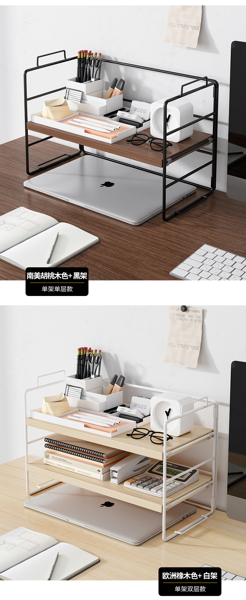 간단한 책장 보관 랙 사무실 데스크탑 스토리지 랙 테이블 소형 다층 연철 책상 마감 랙 책장