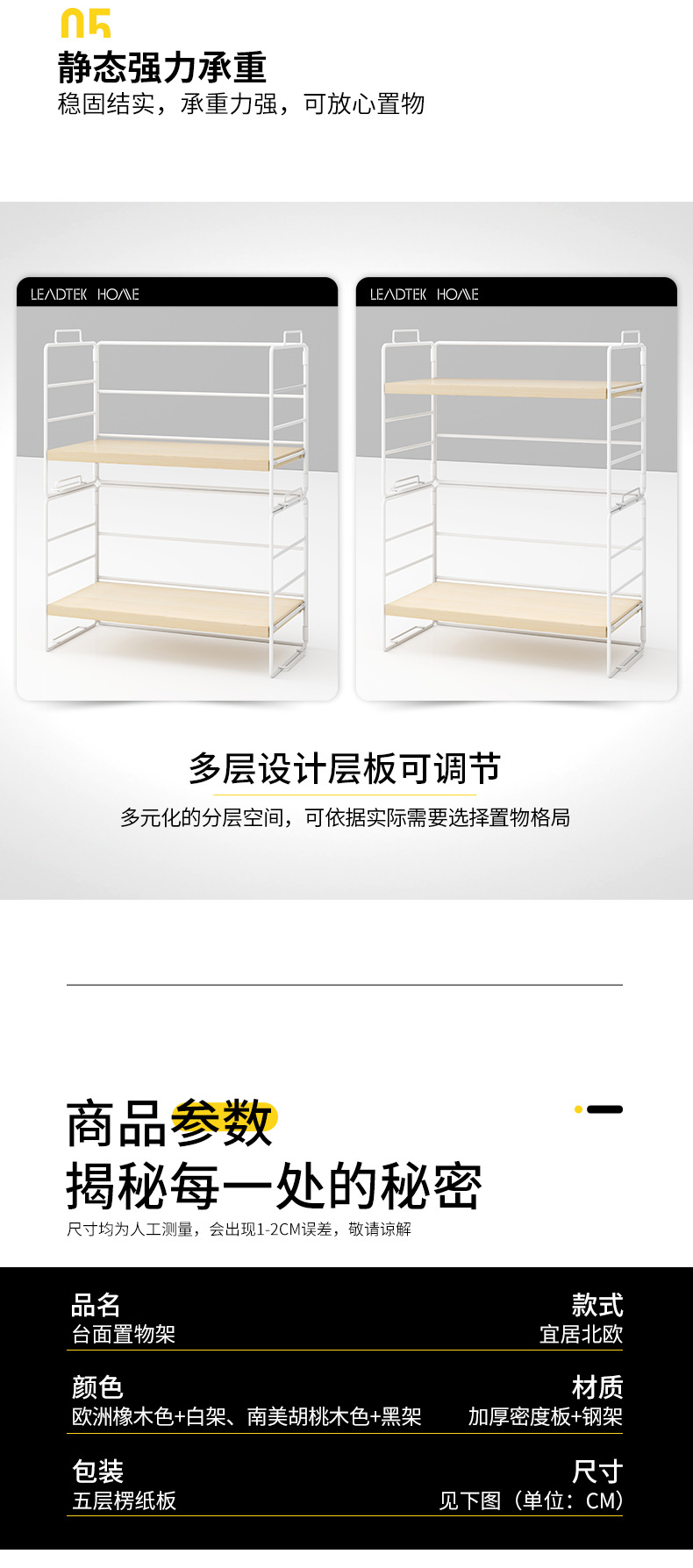 • [무료 설치] 3 층-블랙 선반 블랙