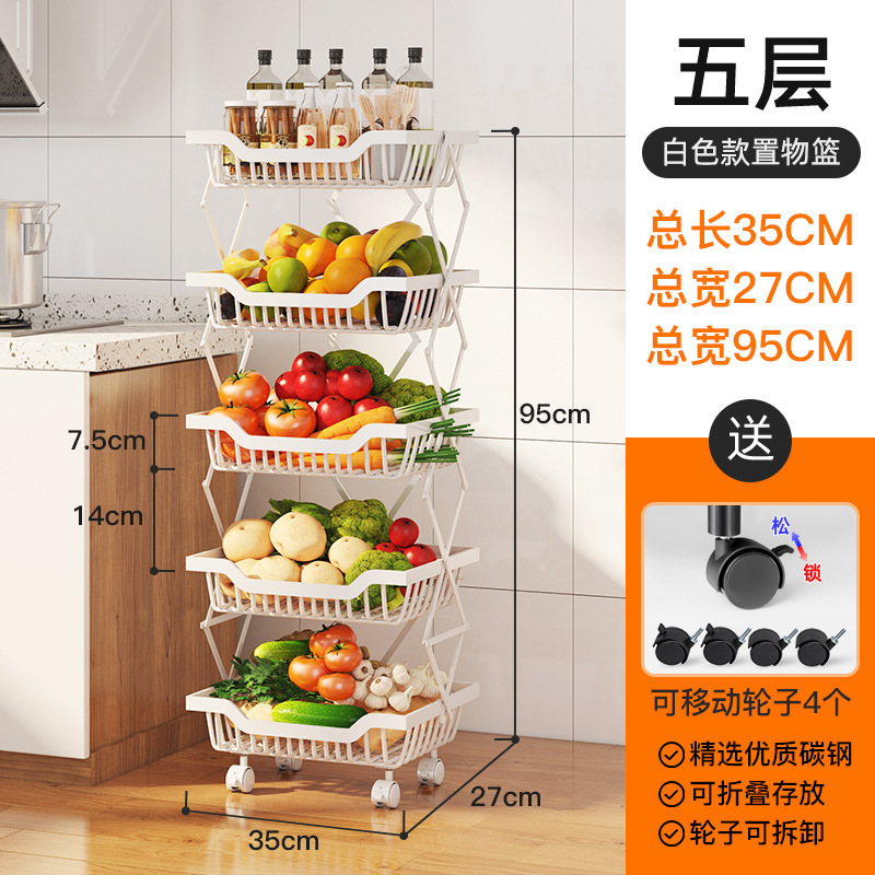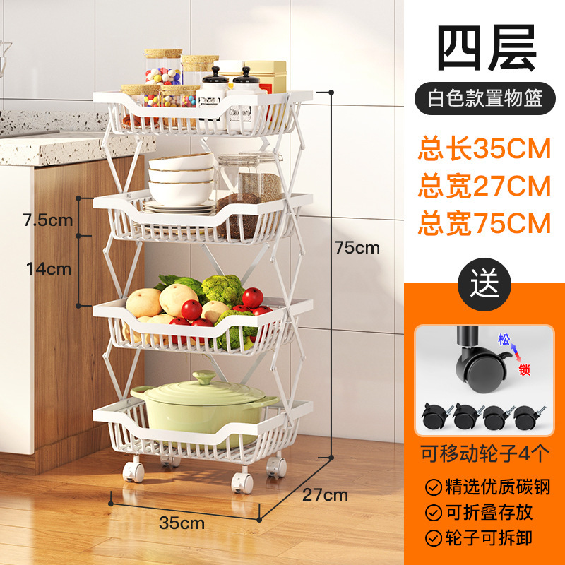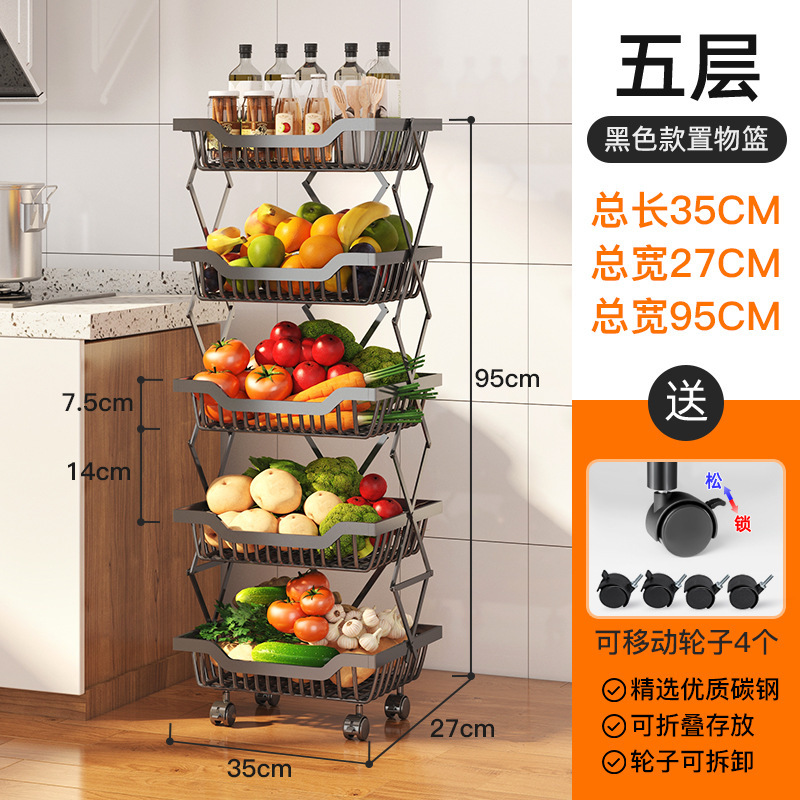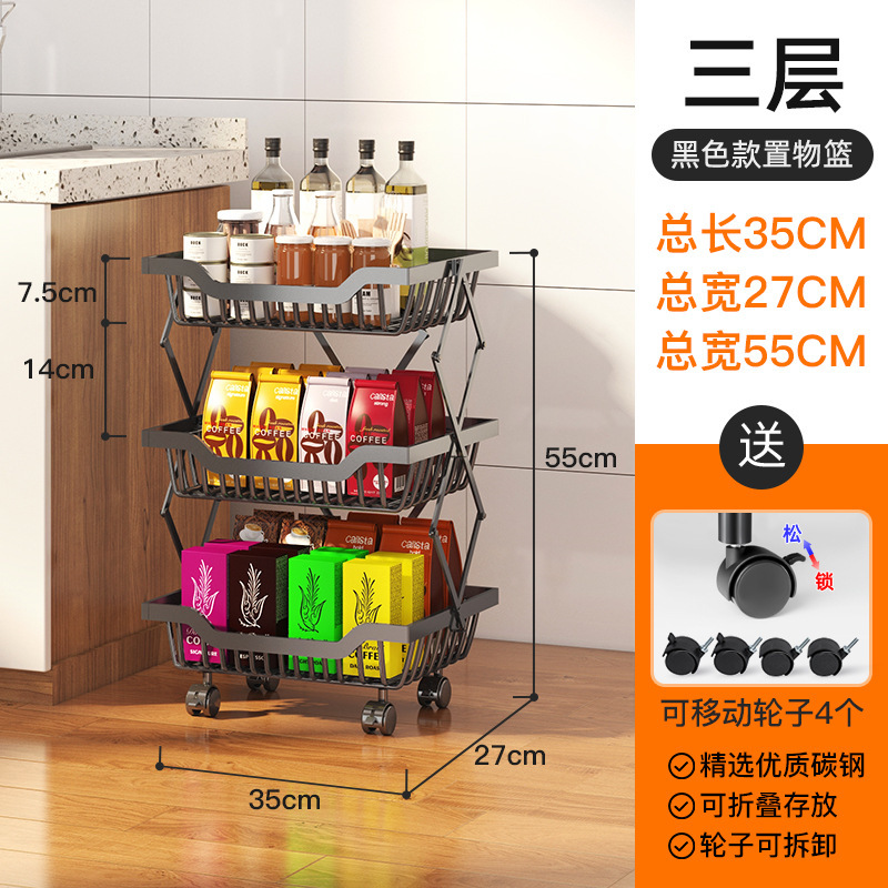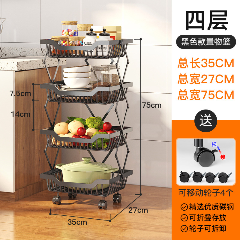 크로스보더 신축성 있는 접이식 과일 및 야채 보관 랙 바닥에 서있는 이동식 다층 주방 조미료 용품 보관 랙스토어 가기