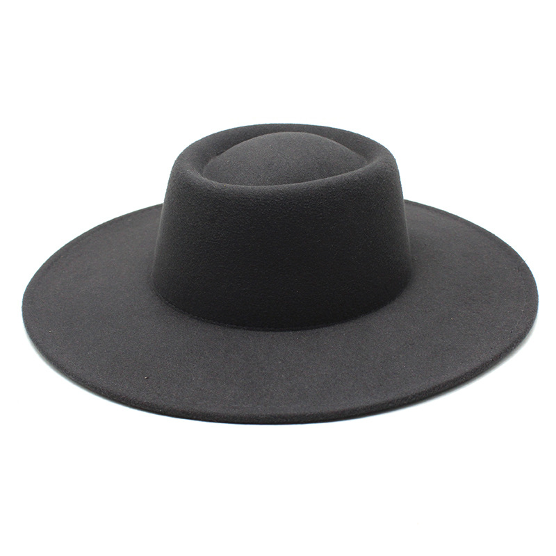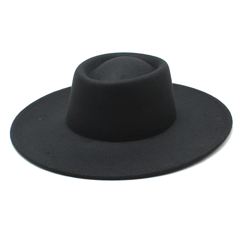 크로스 보더 새로운 가을과 겨울 울 9.5cm 큰 챙 재즈 탑 햇 남성과 여성의 오목한 볼록 링 탑 햇 펠트 모자