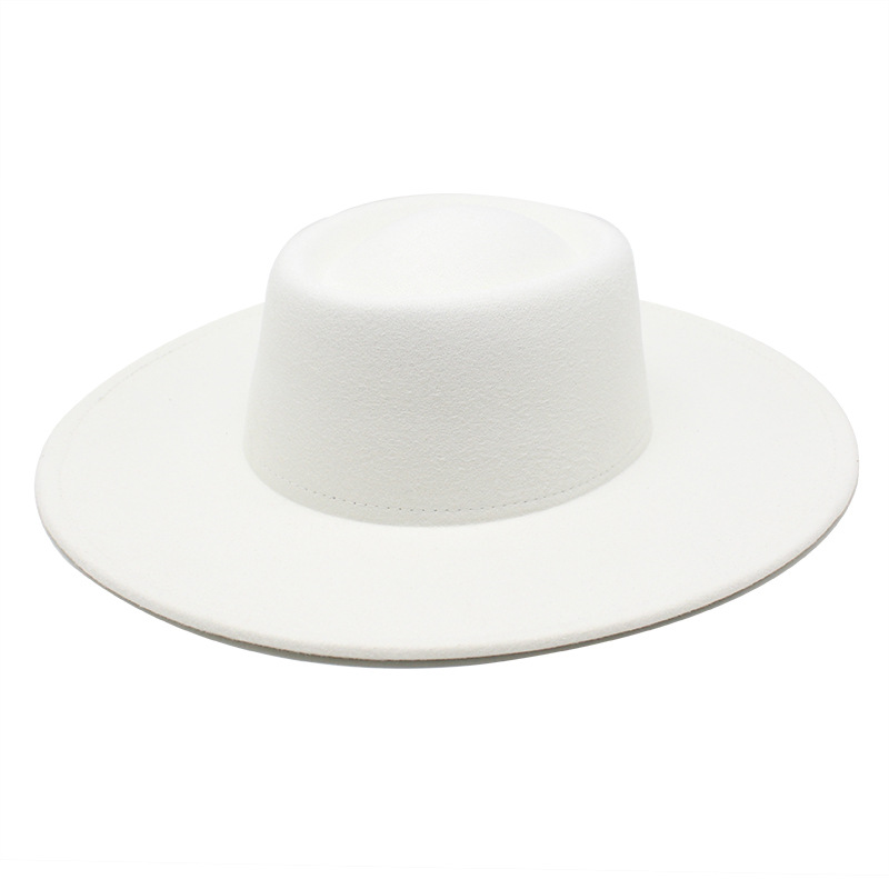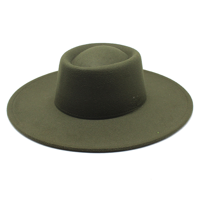 크로스 보더 새로운 가을과 겨울 울 9.5cm 큰 챙 재즈 탑 햇 남성과 여성의 오목한 볼록 링 탑 햇 펠트 모자스토어 가기