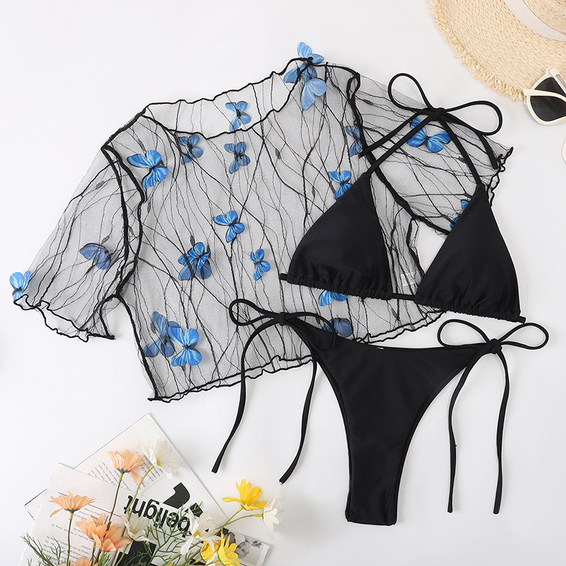 새로운 분할 3 피스 나비 메쉬 비키니스토어 가기