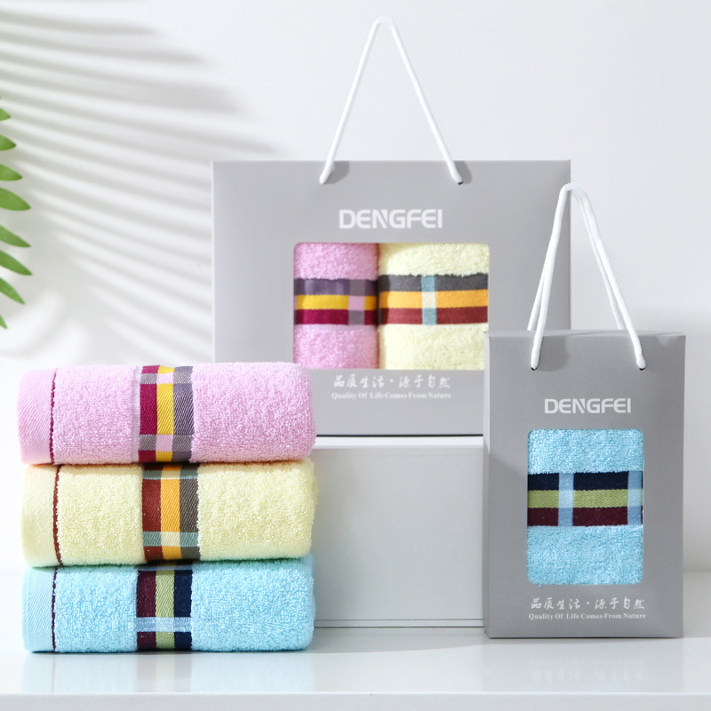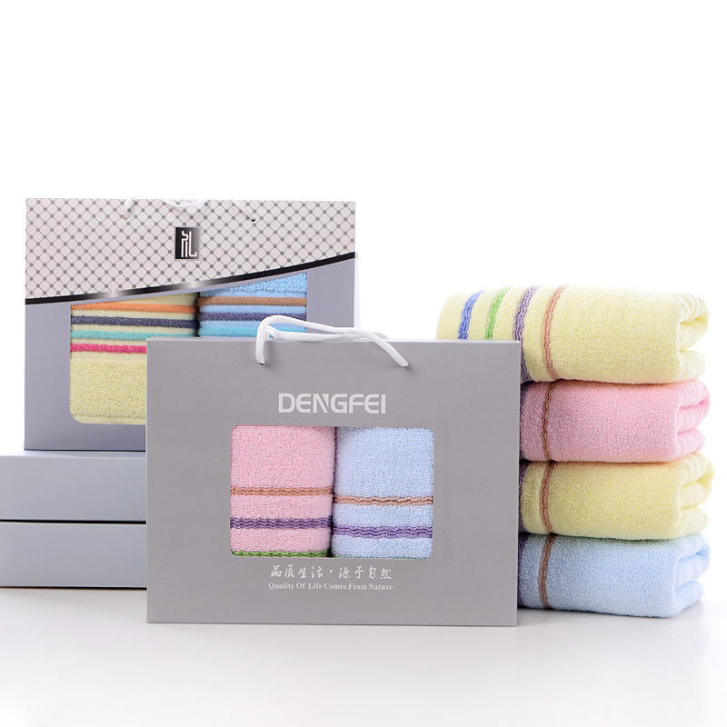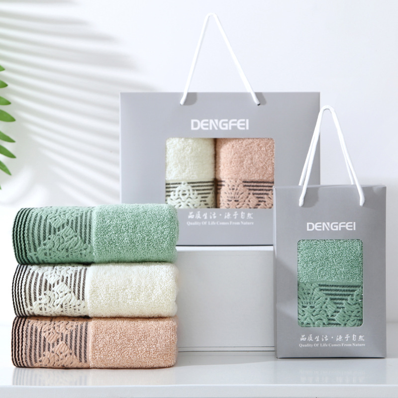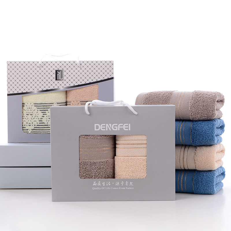 면 두꺼운 수건 박스 두 수건 선물 상자 세트 부드러운 흡수성 창조적 인 선물 회사 복지 인쇄스토어 가기