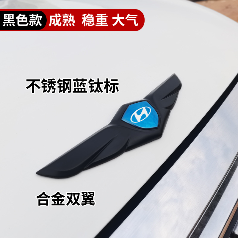 • 현대 자동차 라벨 스티커 블랙 윙 블루 라벨 (플라잉)