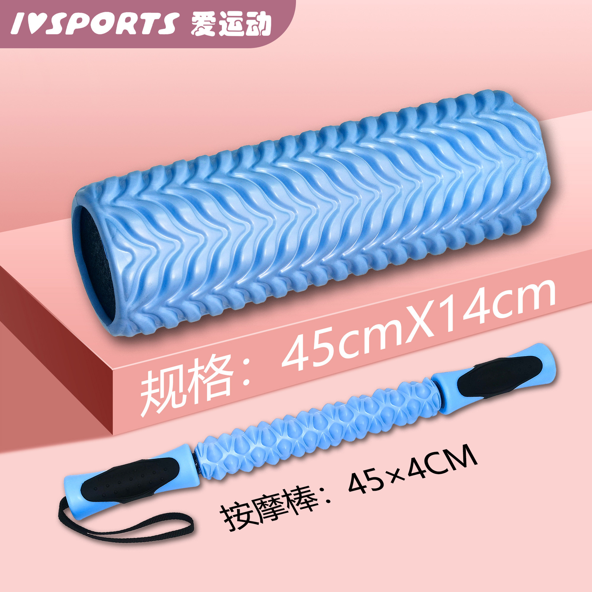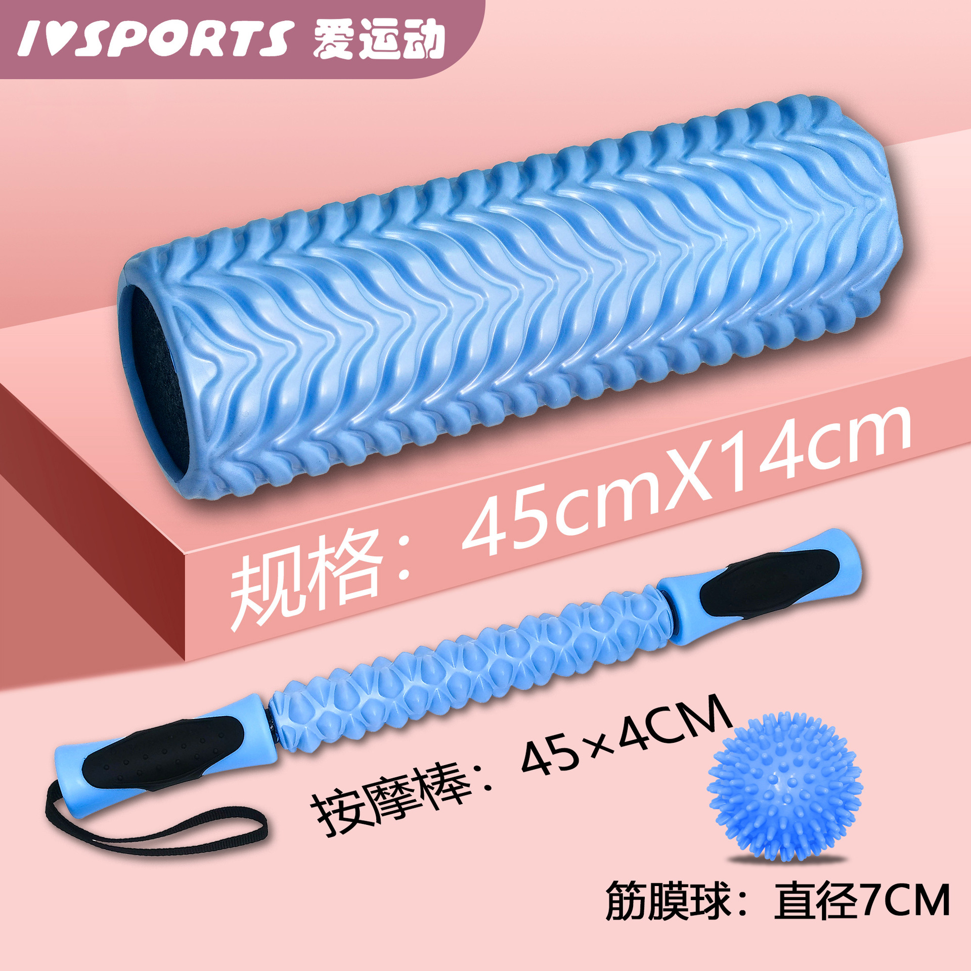 • 손에 맞는 솔리드 샤프트: 하늘색 + 마사지 스틱 + 근막 볼