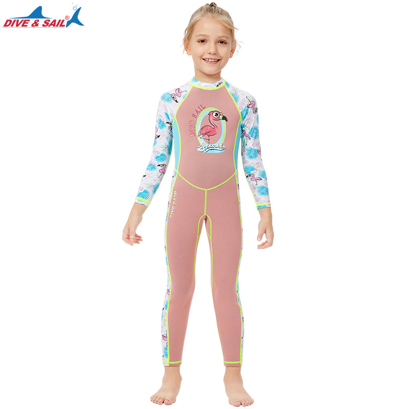 DIVE&SAIL 어린이 다이빙 슈트 2MM 원피스 보온 수영복 여성용 긴팔 자외선 차단 스노클링 서핑 해파리 슈트