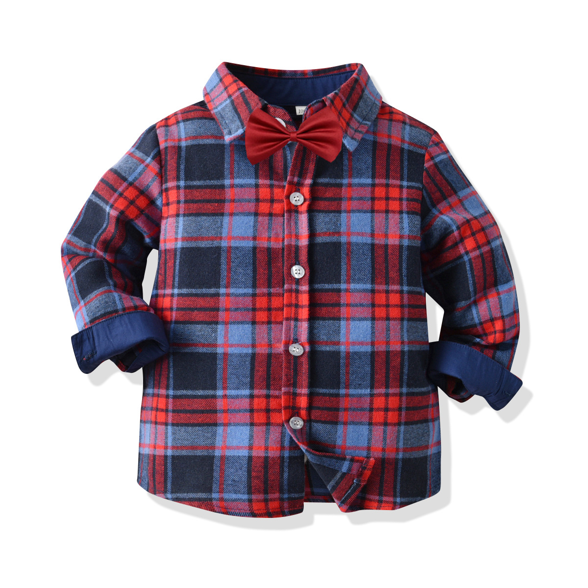 2021 새로운 소년 신사 격자 무늬 셔츠 어린이 휴일 넥타이 긴 소매 셔츠 탑 캐주얼 의류스토어 가기