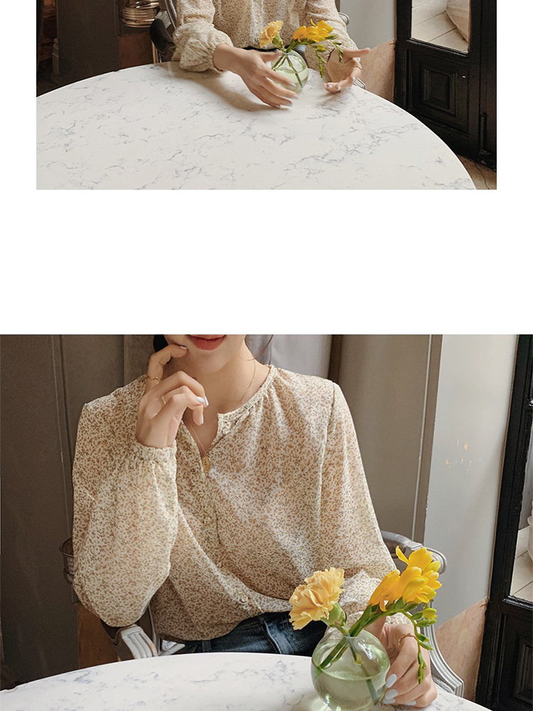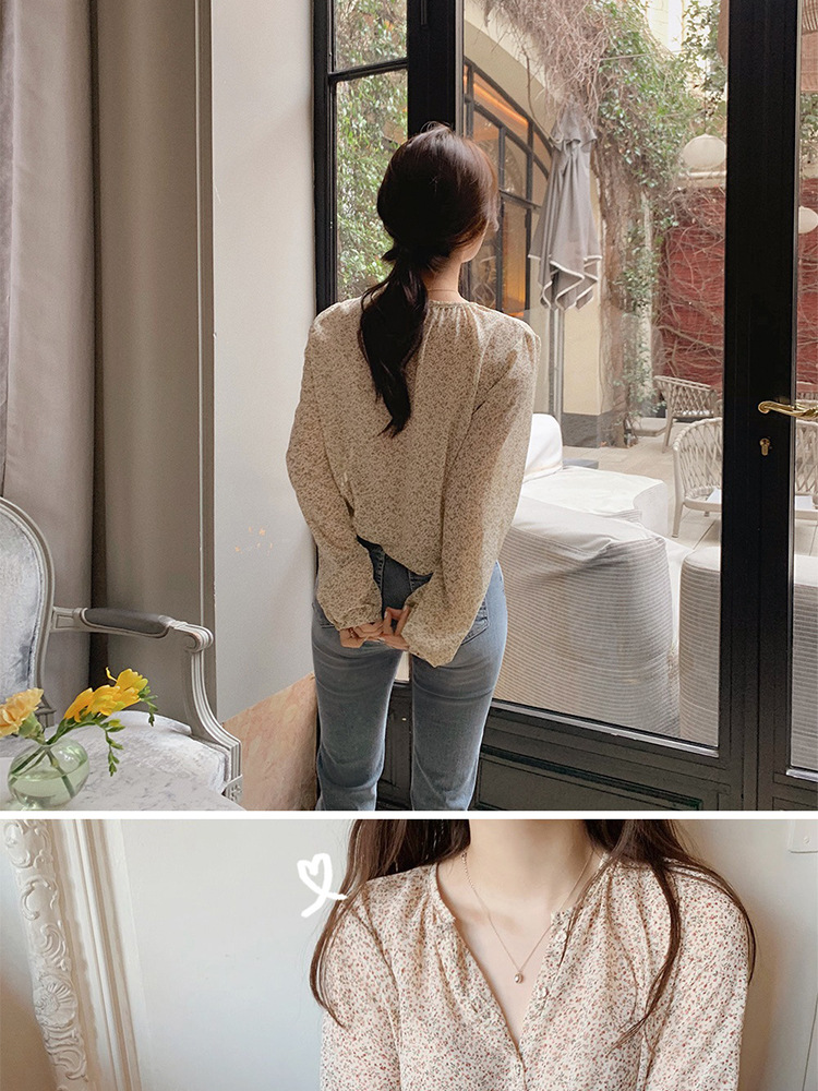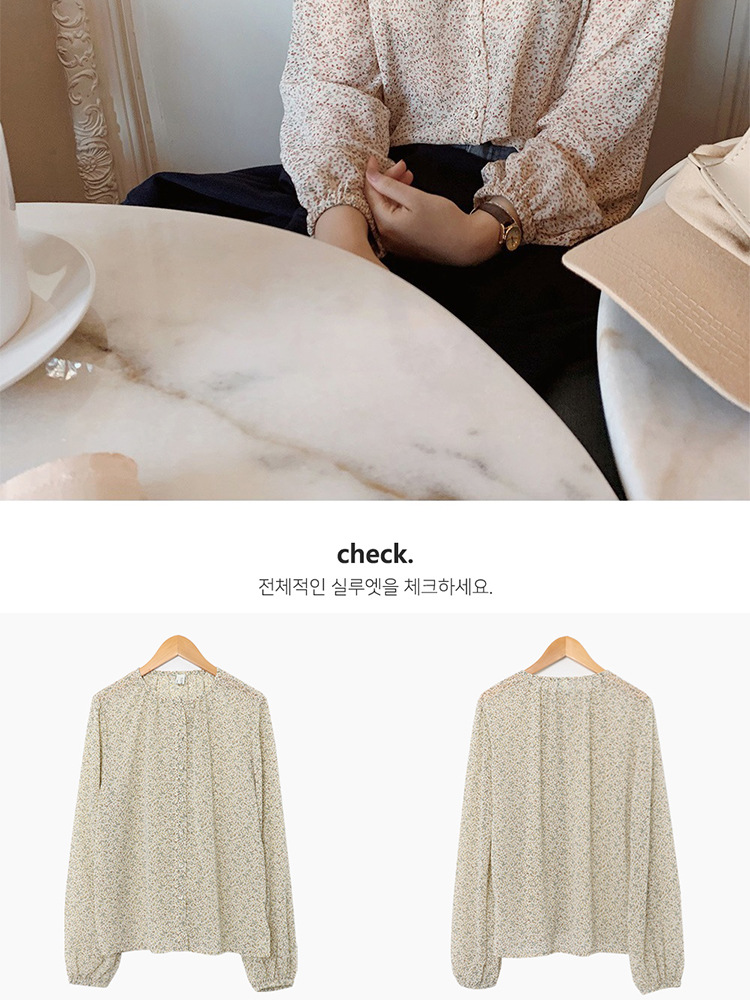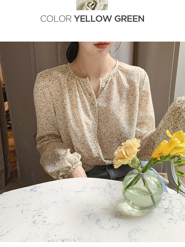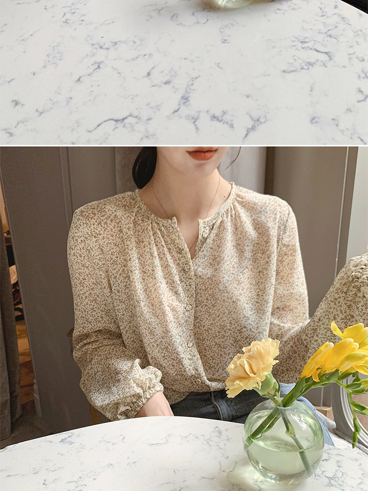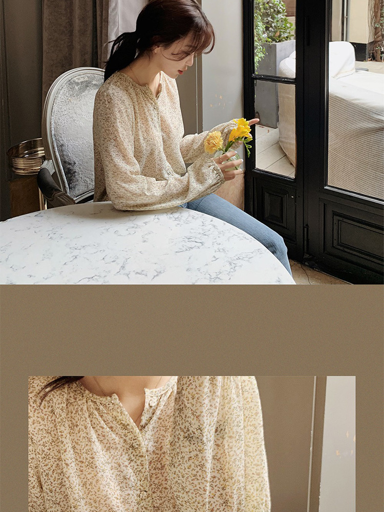 패션 꽃 쉬폰 셔츠 긴 소매 이른 가을 레트로 홍콩 스타일 달콤한 느슨한 퍼프 소매 작은 셔츠 세련된 탑스토어 가기