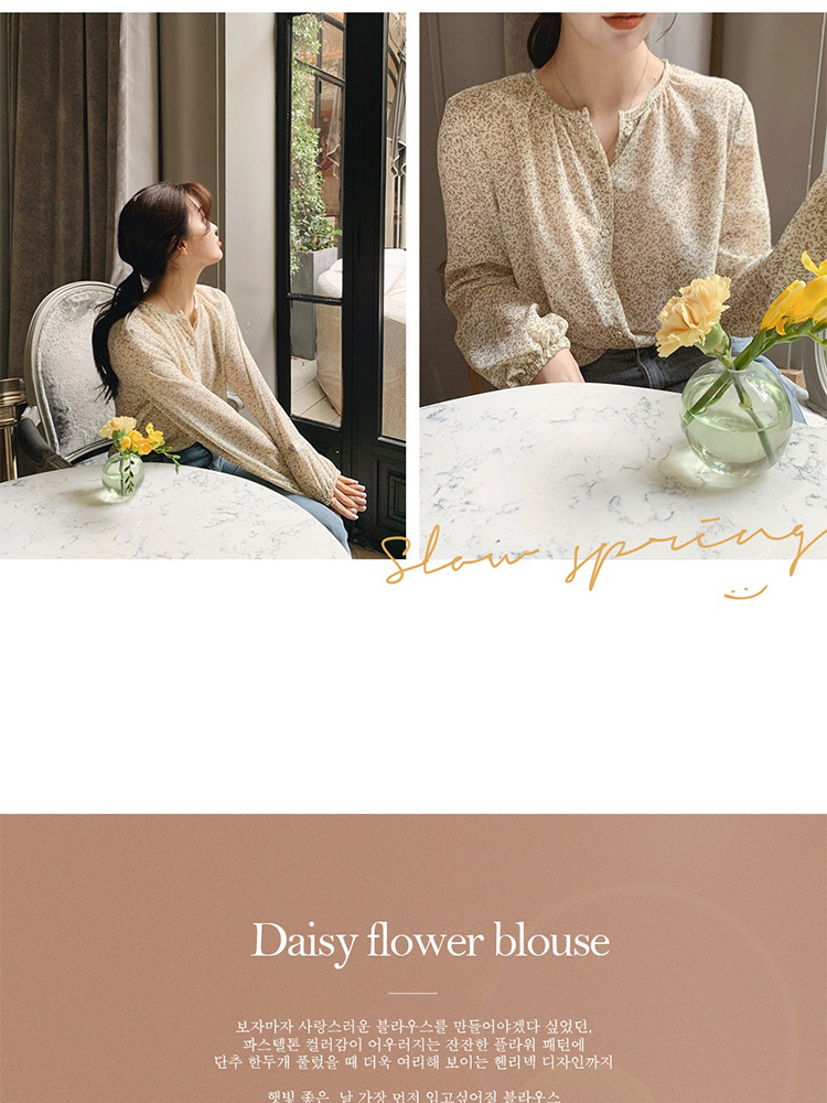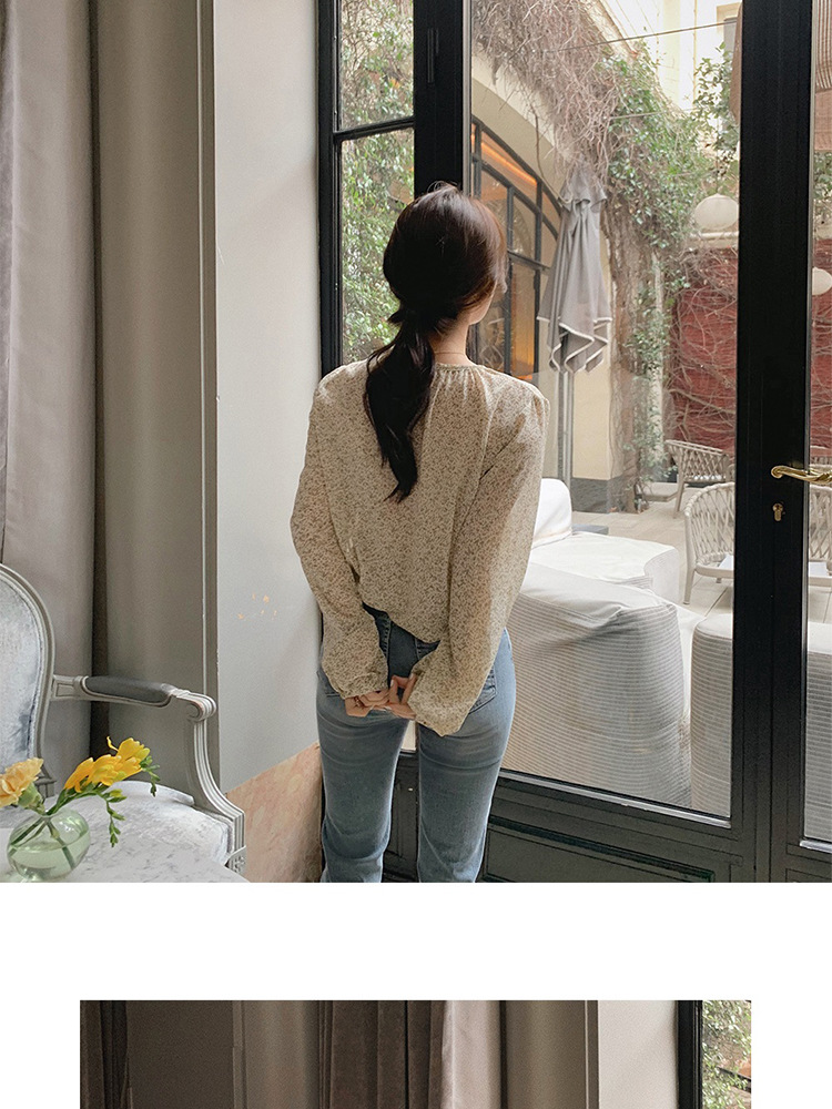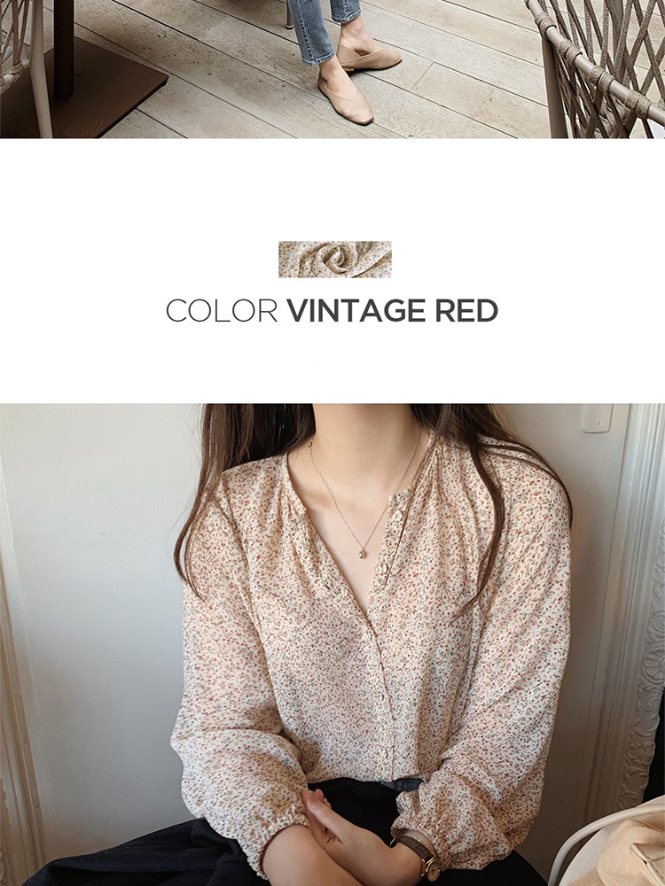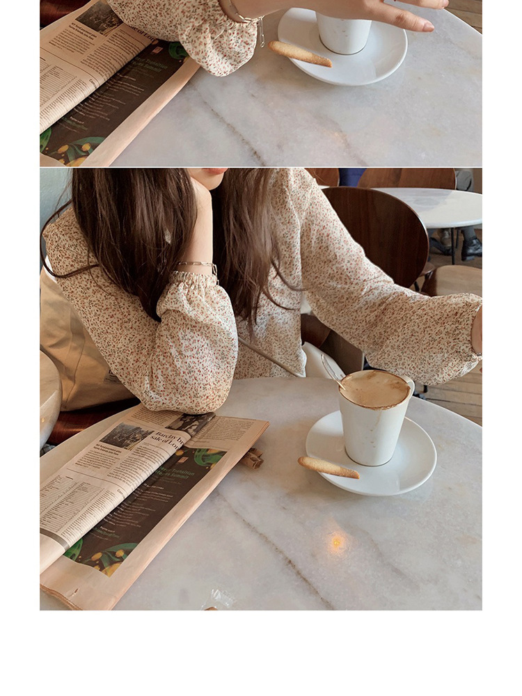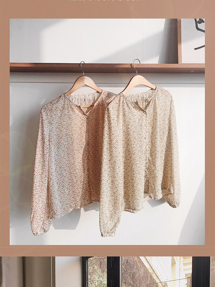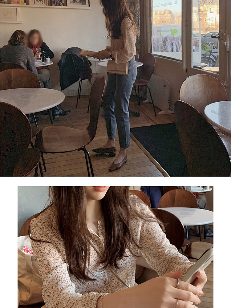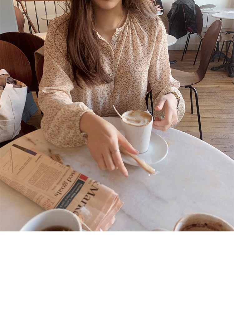 패션 꽃 쉬폰 셔츠 긴 소매 이른 가을 레트로 홍콩 스타일 달콤한 느슨한 퍼프 소매 작은 셔츠 세련된 탑스토어 가기