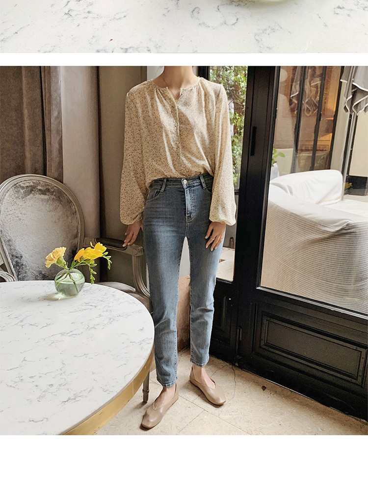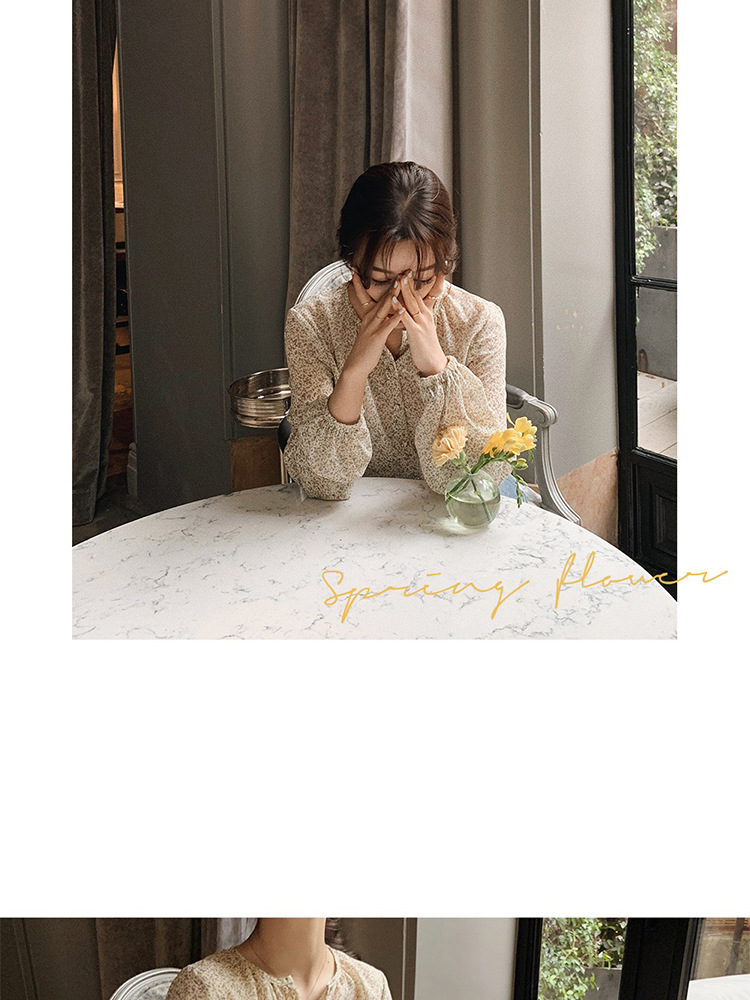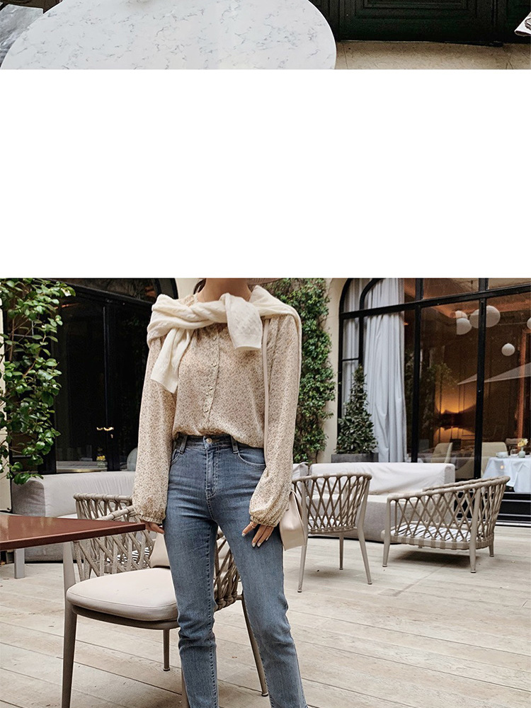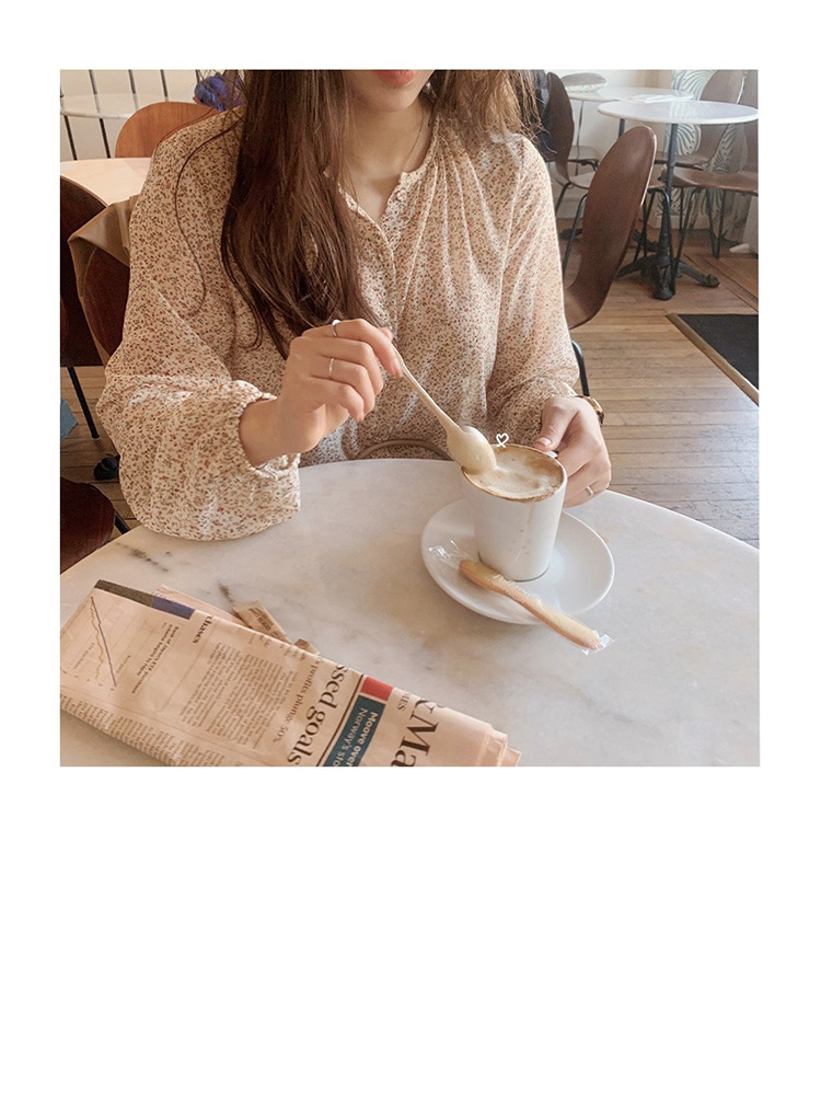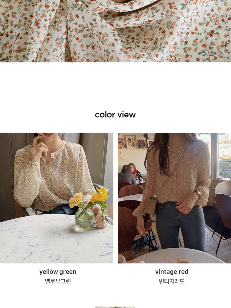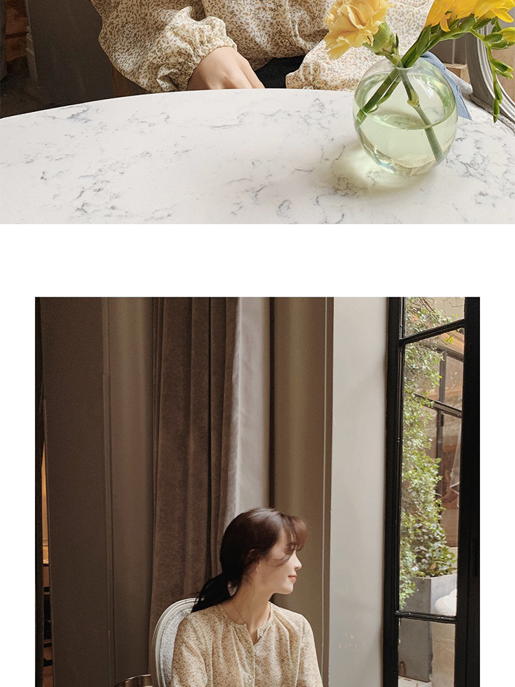 패션 꽃 쉬폰 셔츠 긴 소매 이른 가을 레트로 홍콩 스타일 달콤한 느슨한 퍼프 소매 작은 셔츠 세련된 탑스토어 가기